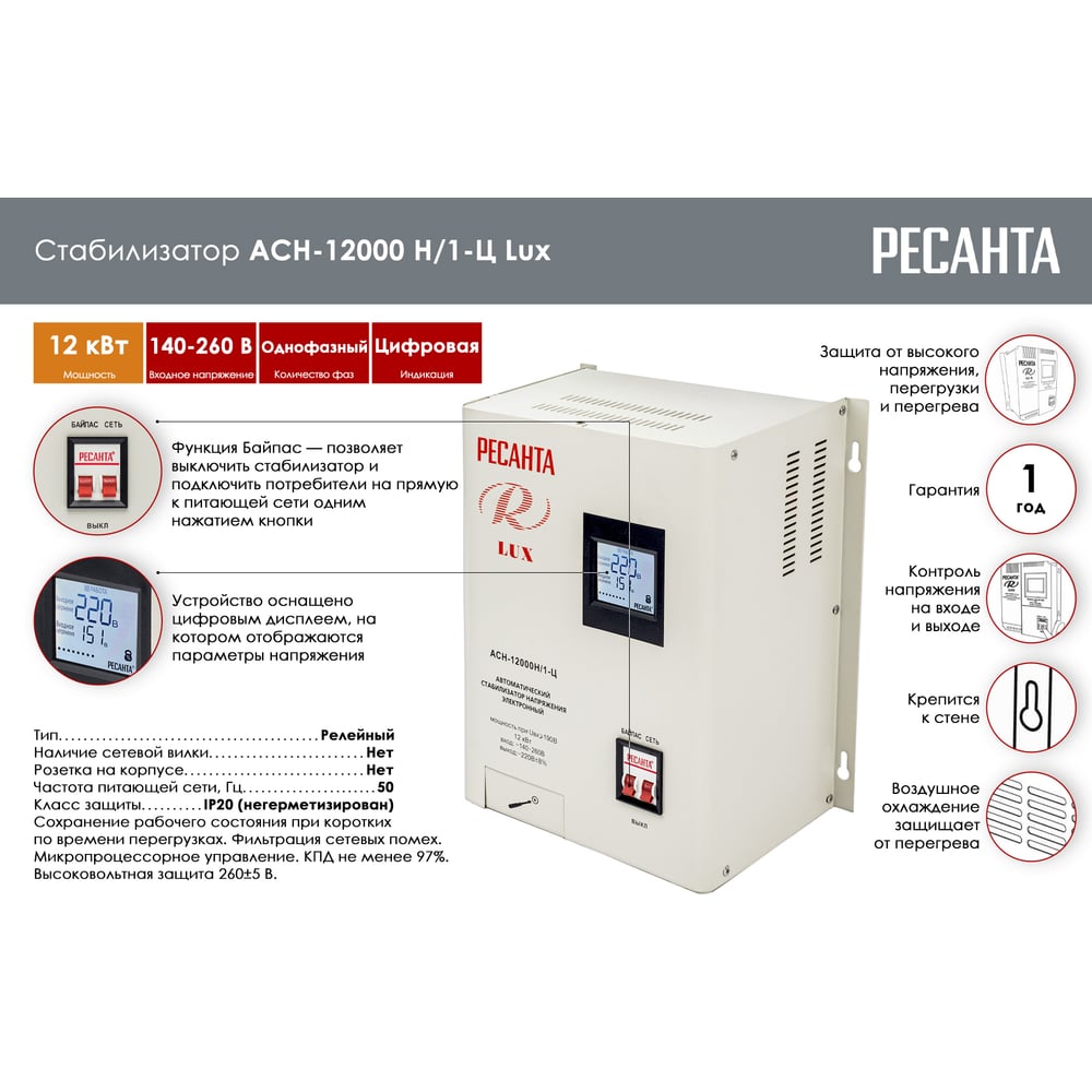 Стабилизатор напряжения Ресанта АСН 12000 Н/1-Ц Lux