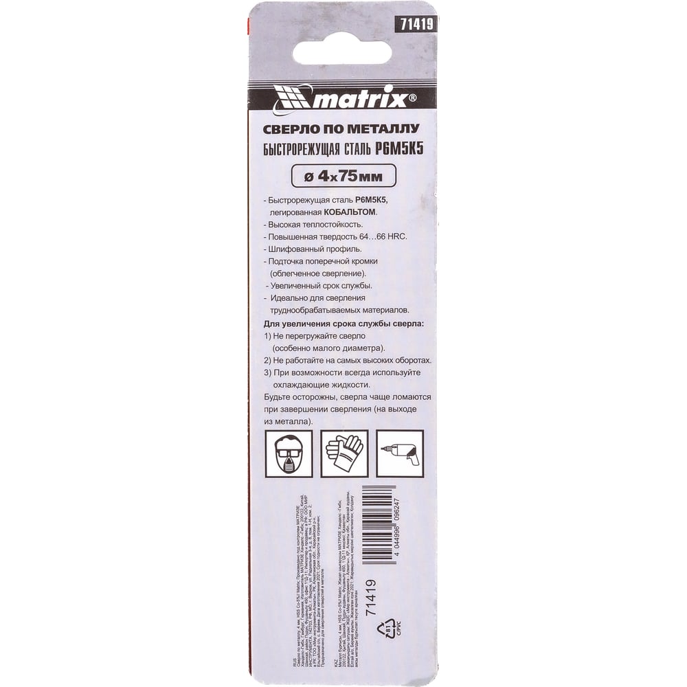 Сверло по металлу (4 мм; HSS Co-5%) MATRIX 71419
