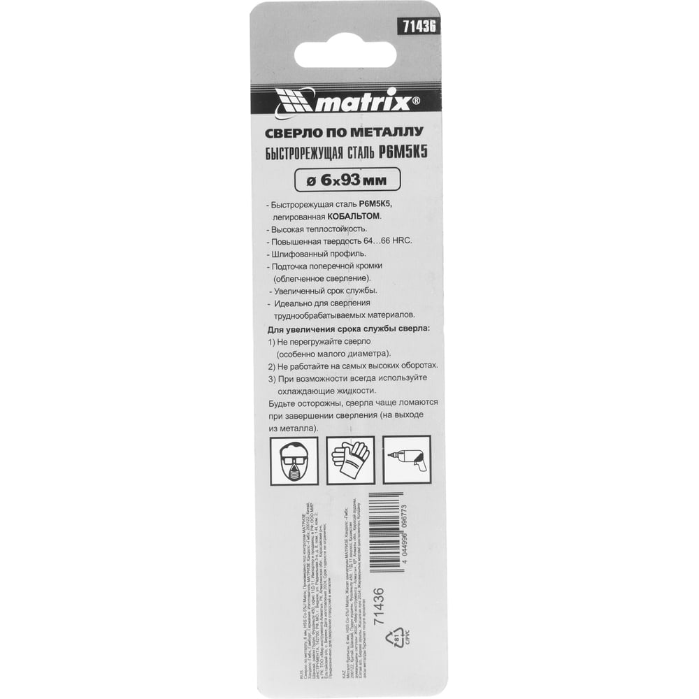 Сверло по металлу (6 мм; HSS Co-5%) MATRIX 71436
