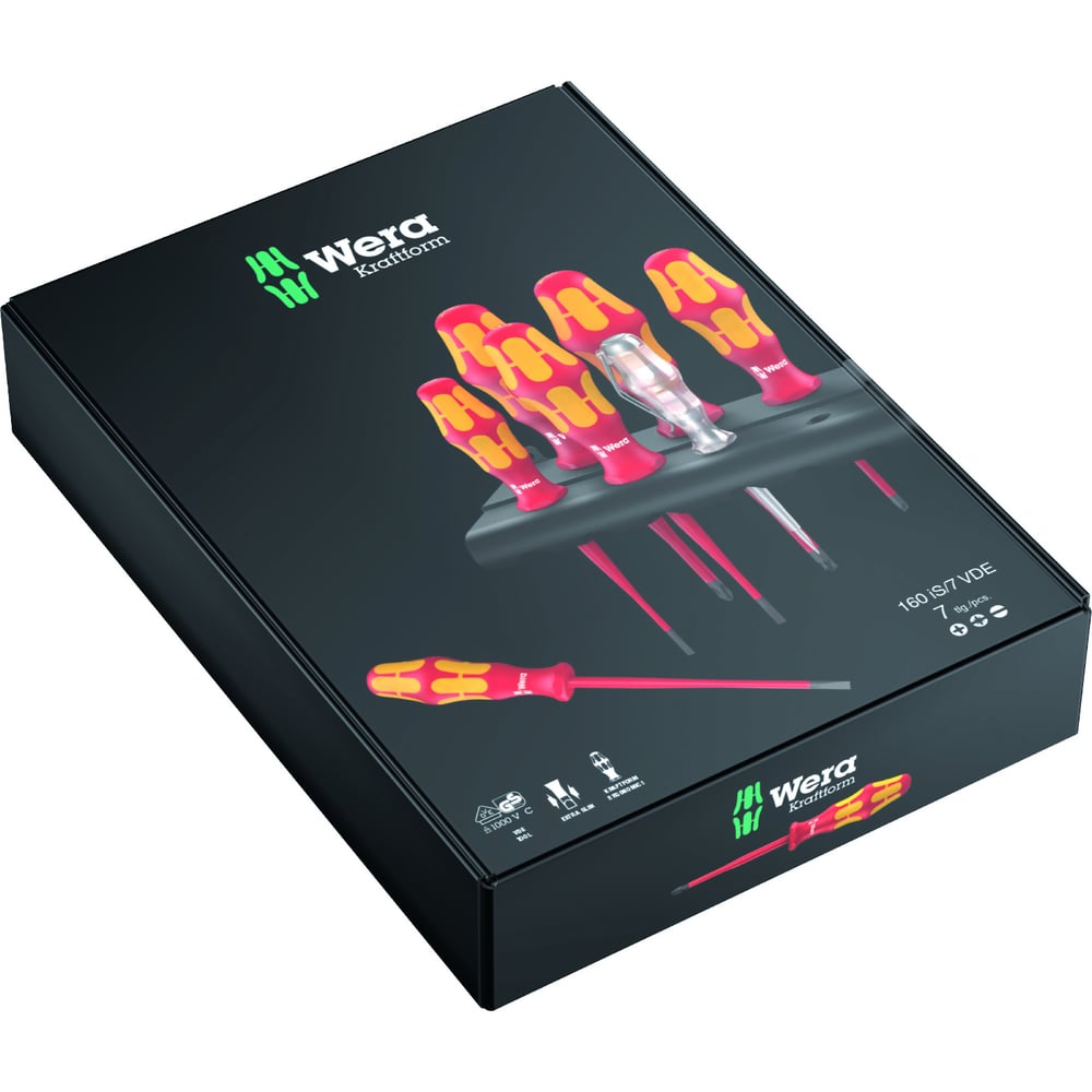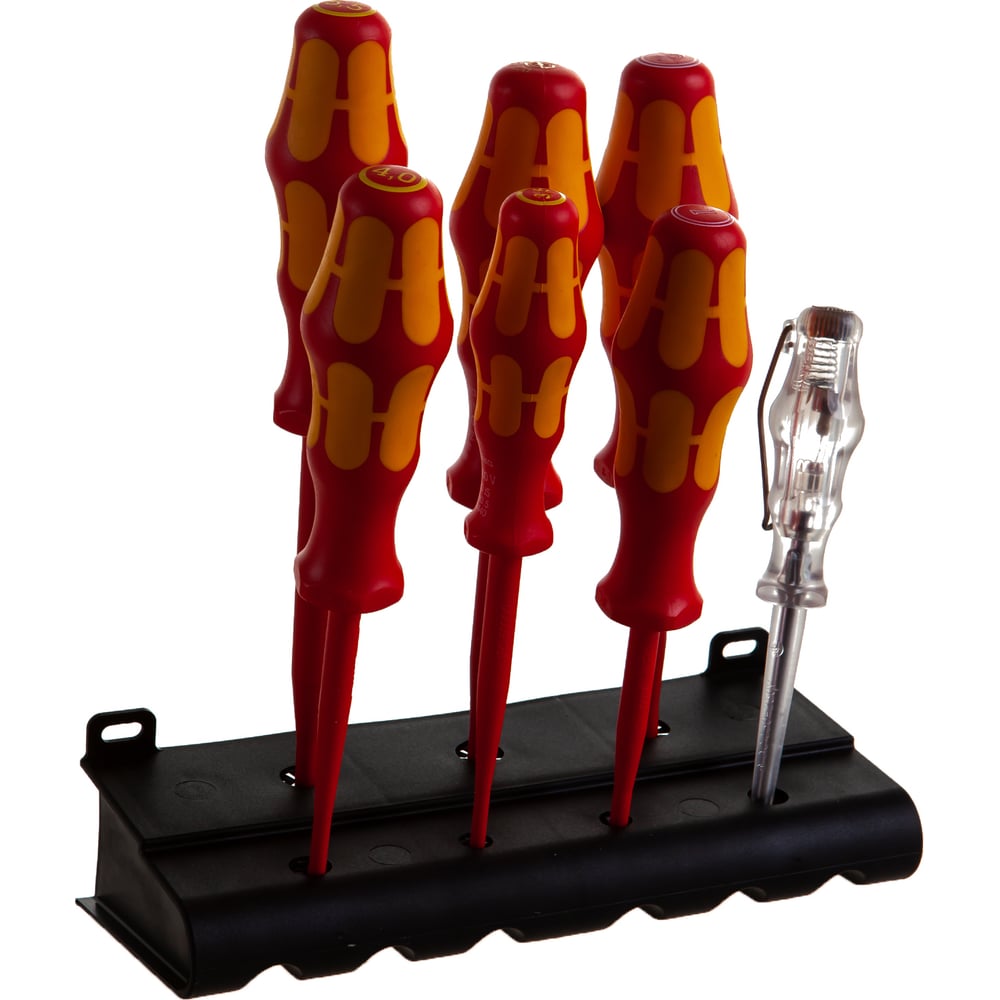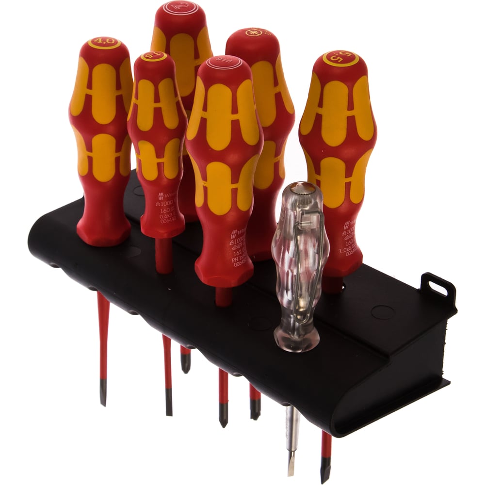 Набор диэлектрических отверток Wera, VDE, индикатор напряжения, подставка, 7 предметов, WE-006480