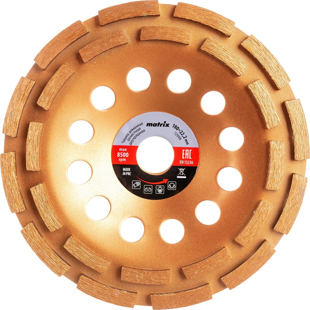 Алмазная зачистная чашка 180 мм двухрядная MATRIX 72998