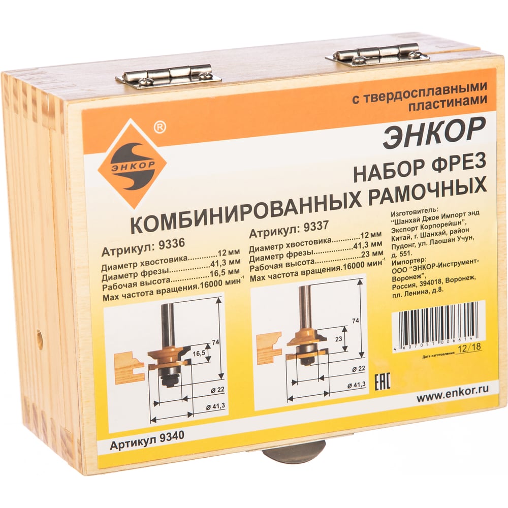 Набор фрез комбинированных рамочных (2 шт; 41.3х23 мм; R 12 мм; хвостовик 12 мм) по дереву Энкор 9340
