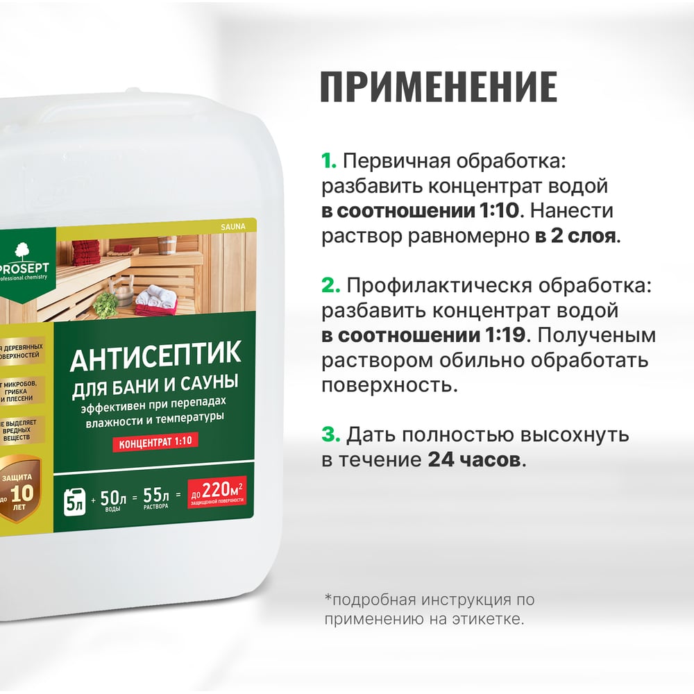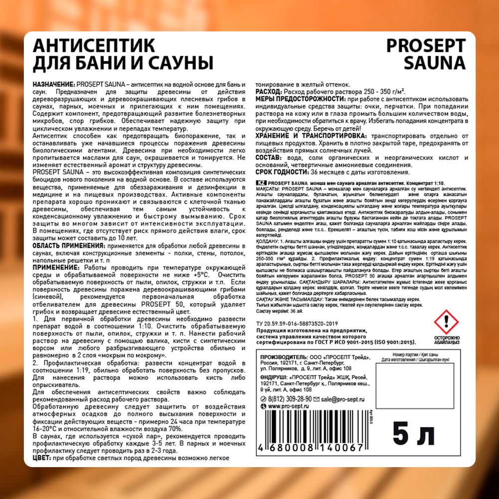 Антисептик для бань и саун PROSEPT SAUNA концентрат 1:10, 5 л 004-5