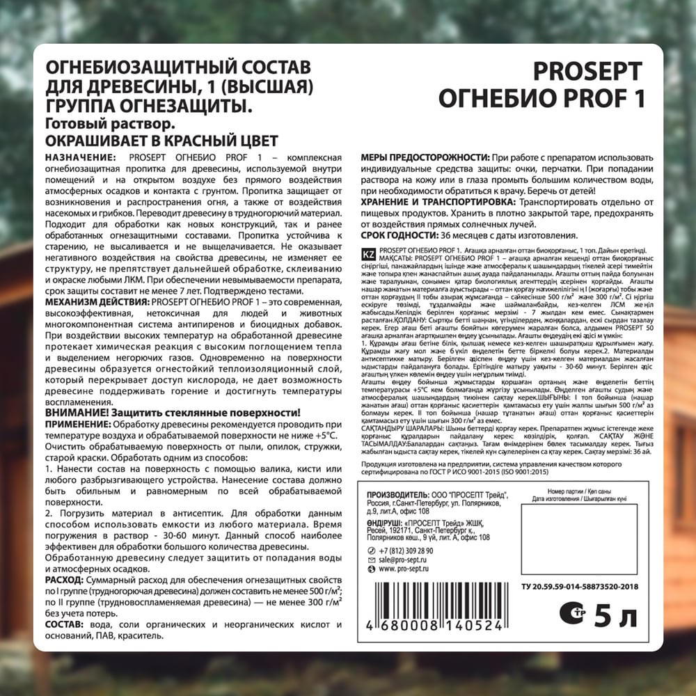 Огнебиозащита для древесины PROSEPT ОГНЕБИО PROF 1, 1 группа 5 л 007-5