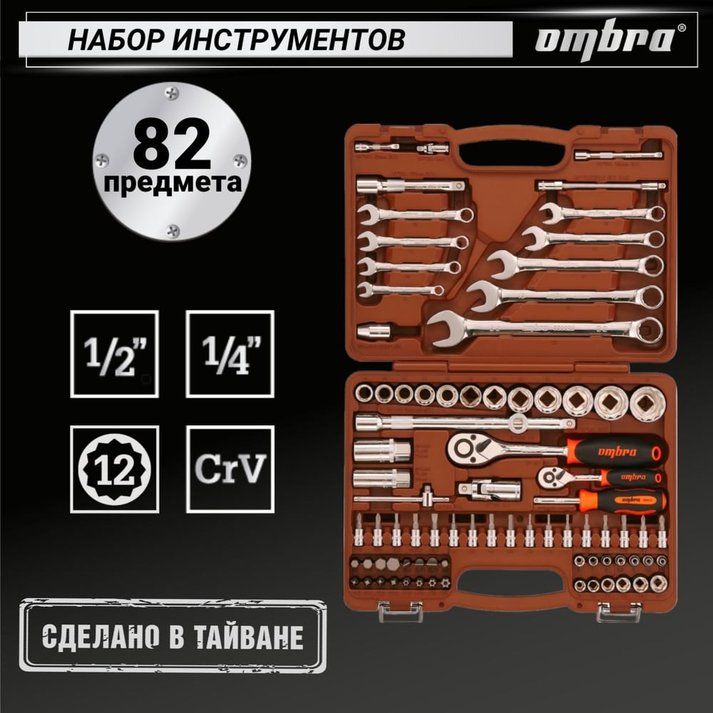 Универсальный набор инструмента Ombra OMT82S12 с 12-гр. головками, 82 предмета 55377 055377