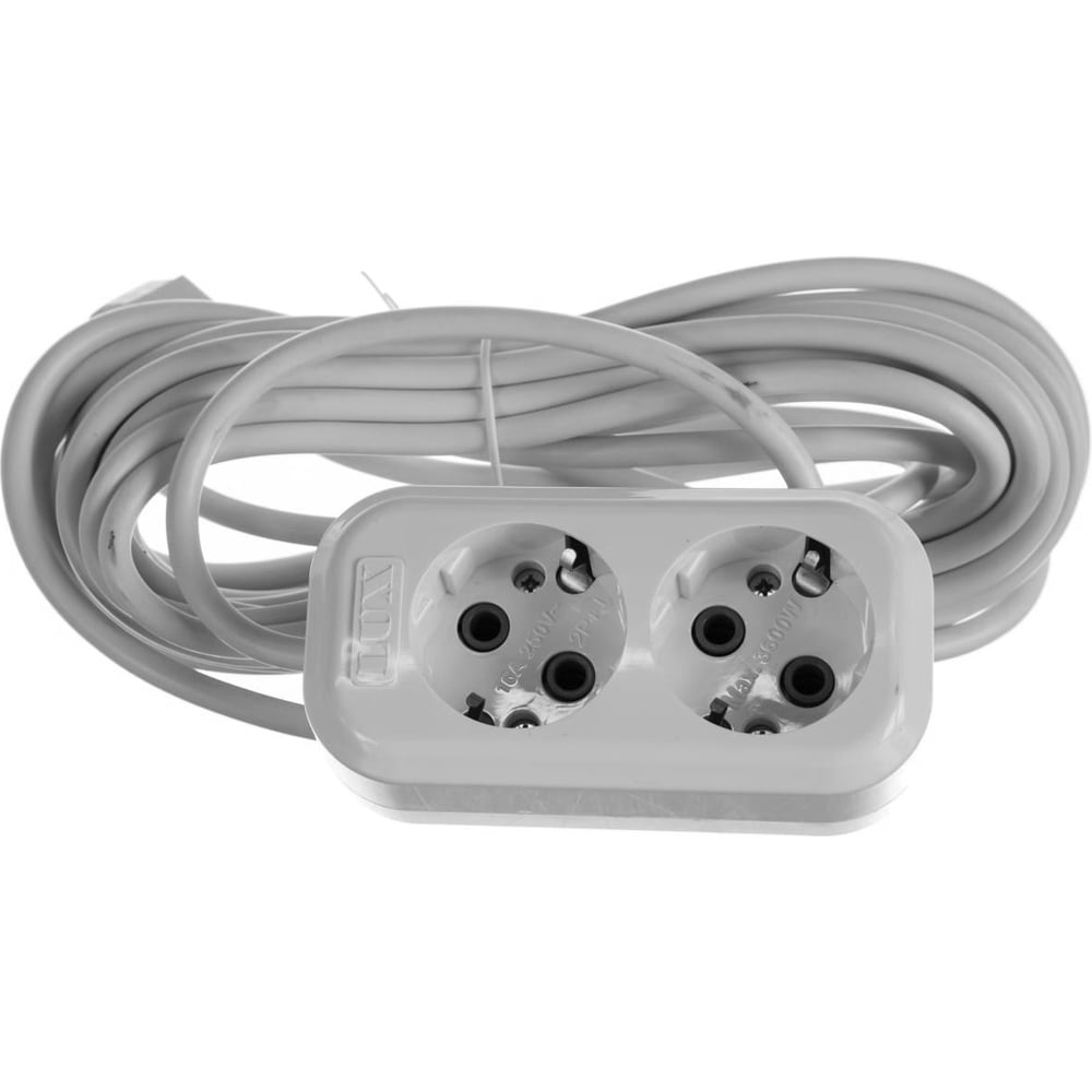 Двухместный сетевой удлинитель с заземлением LUX У2-Е, 7м 4606400414568