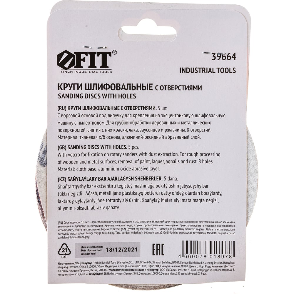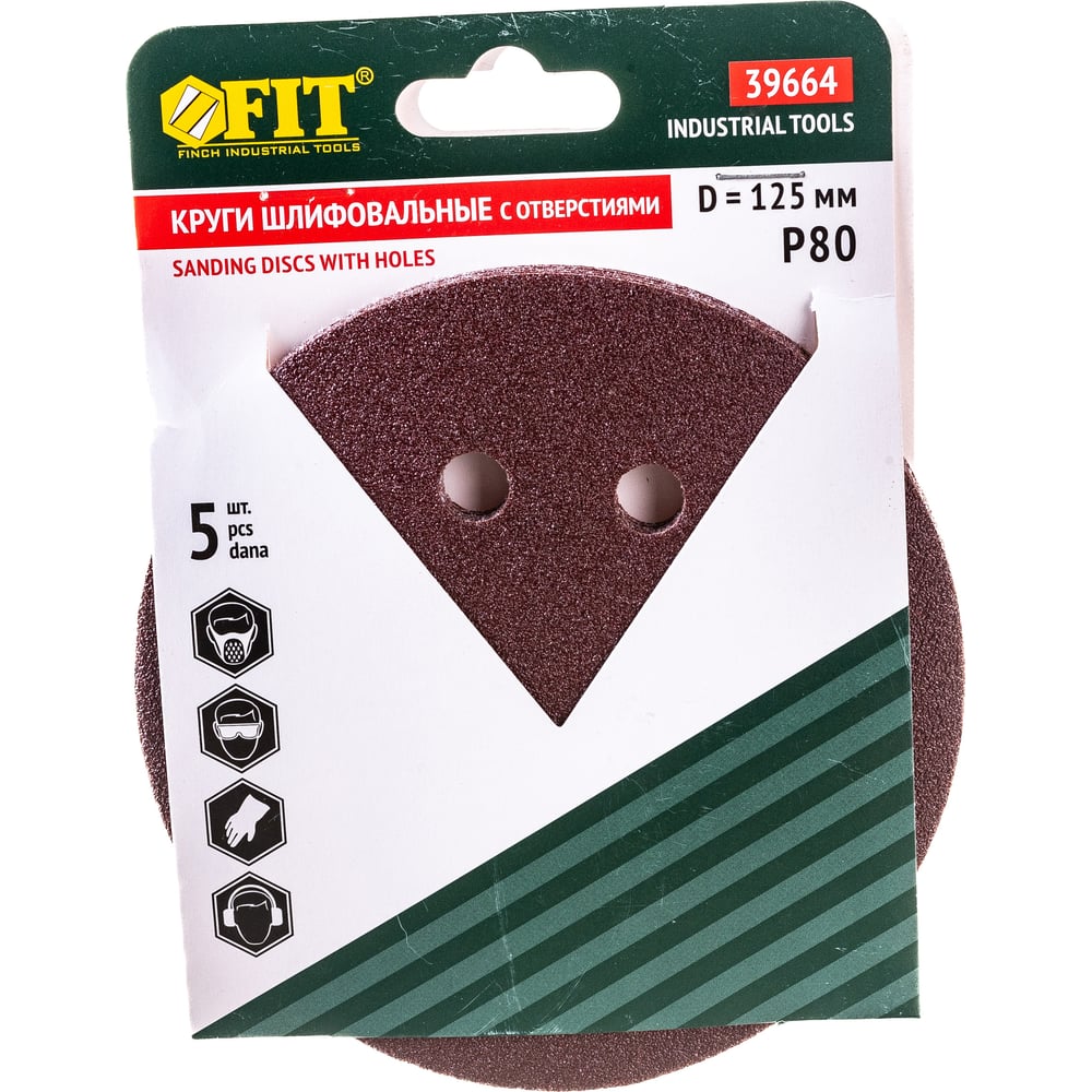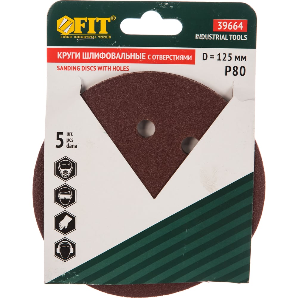Круги шлифовальные 5 шт. (125 мм; Р80; 8 отверстий) FIT IT 39664