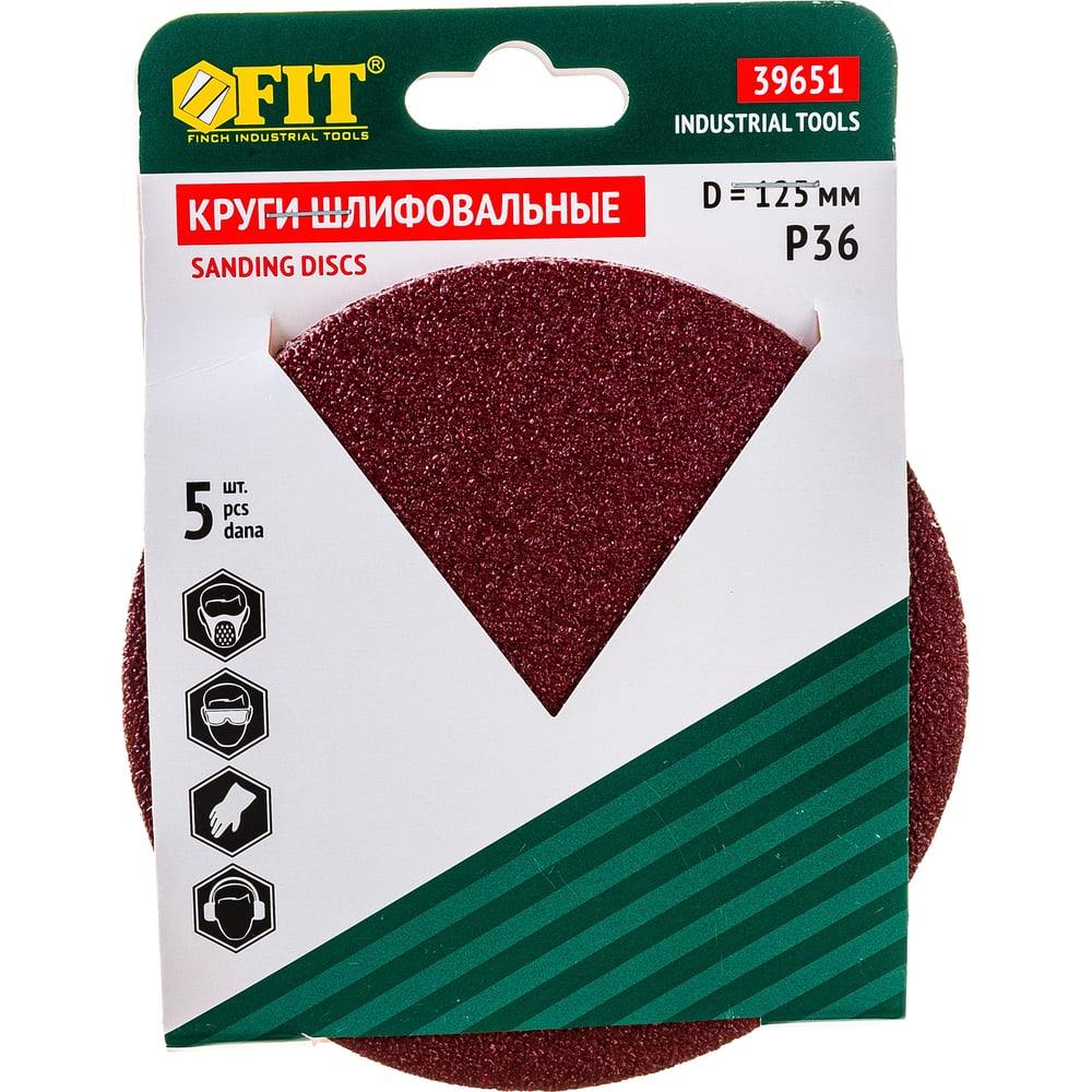Круги шлифовальные 5 шт. (125 мм; Р36) FIT IT 39651