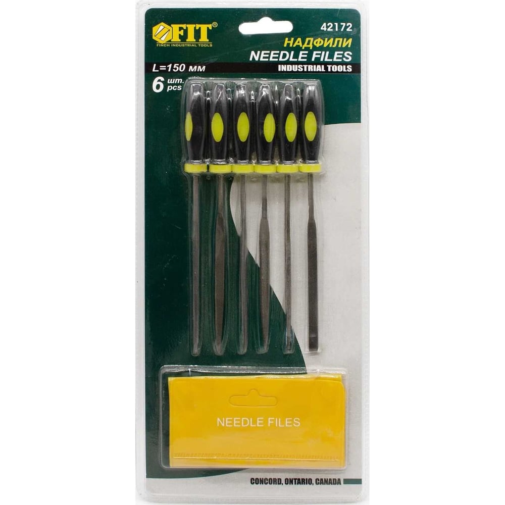 Надфили, прорезиненная ручка, 5х150 мм, 6 шт FIT IT 42172