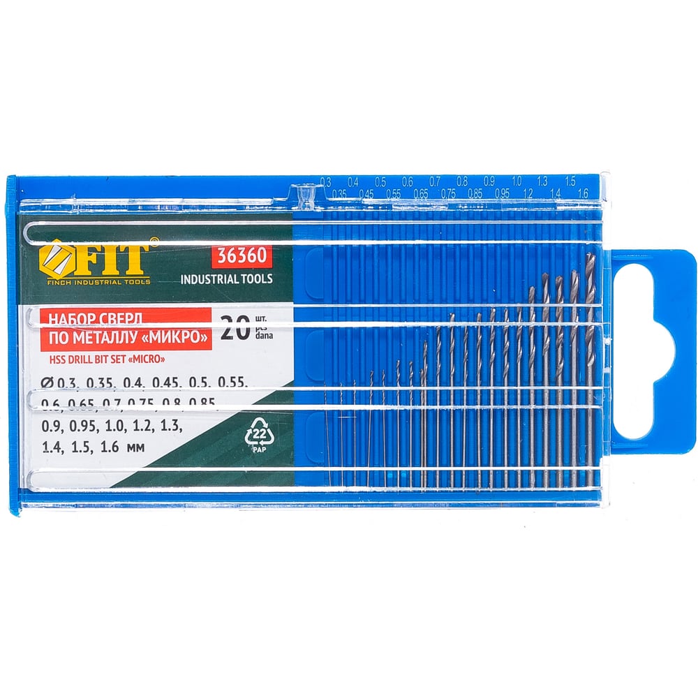 Сверла по металлу полированные "микро" (20 шт; 0.3-1.6 мм; HSS) FIT IT 36360