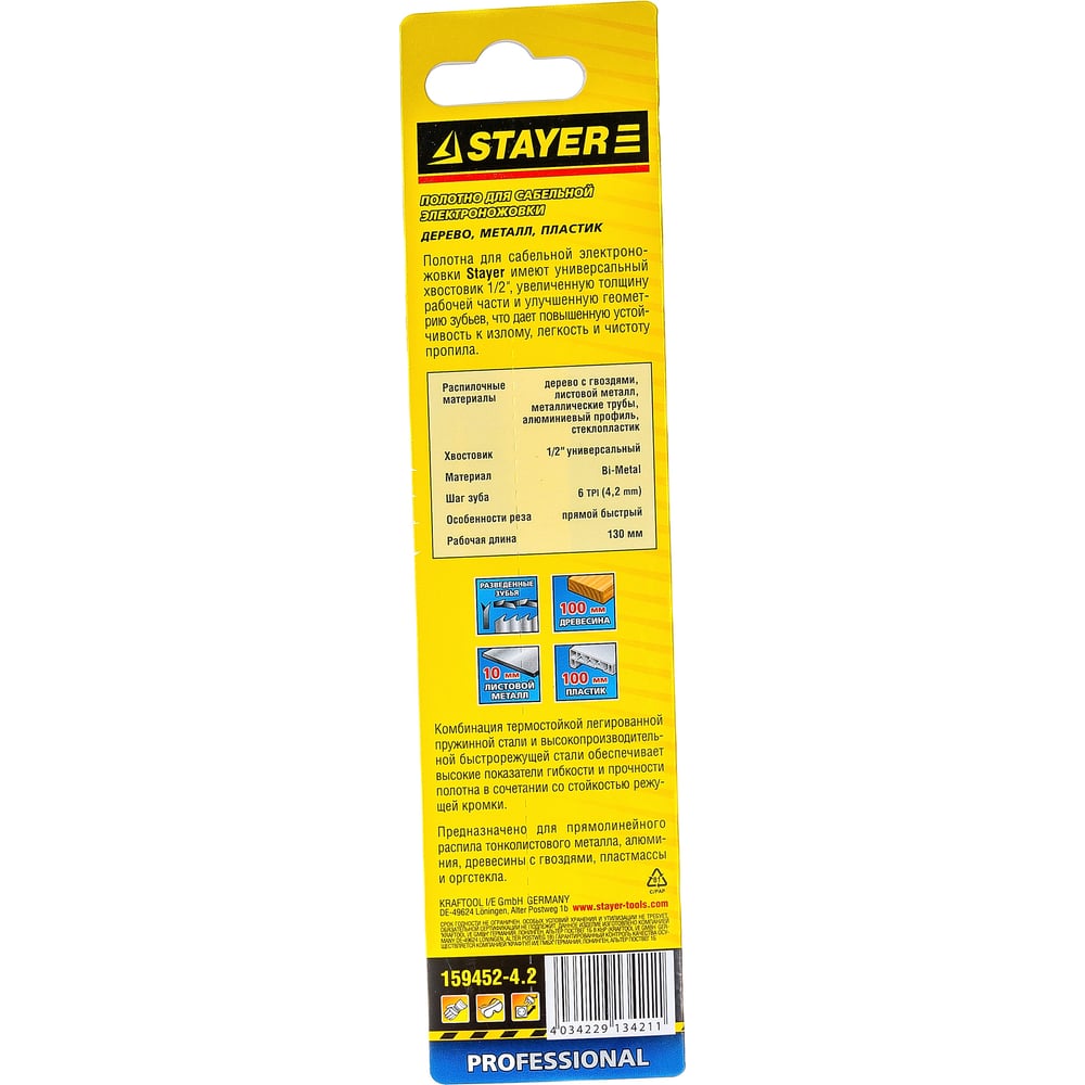 Полотно для сабельной эл. ножовки STAYER S611DF 159452-4.2