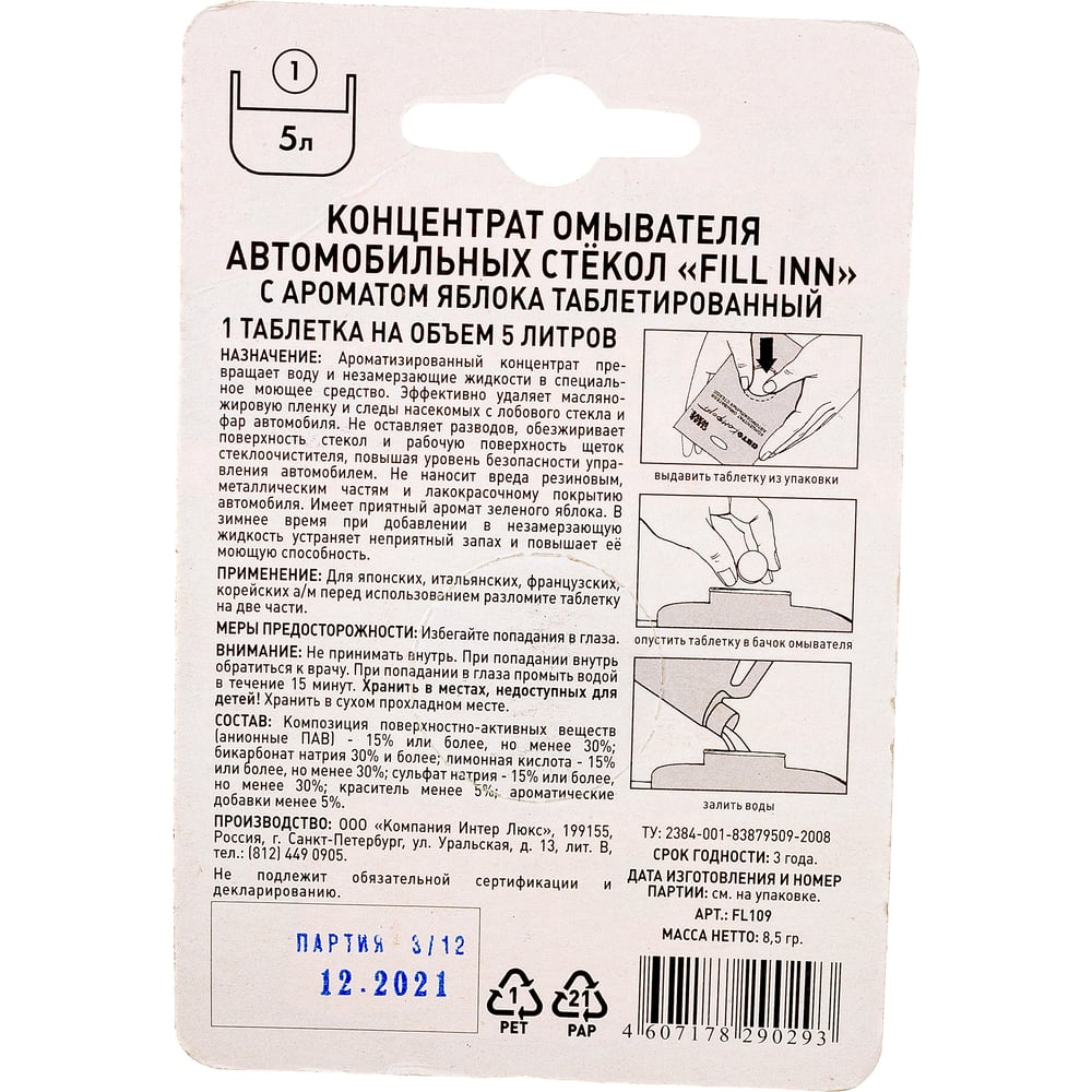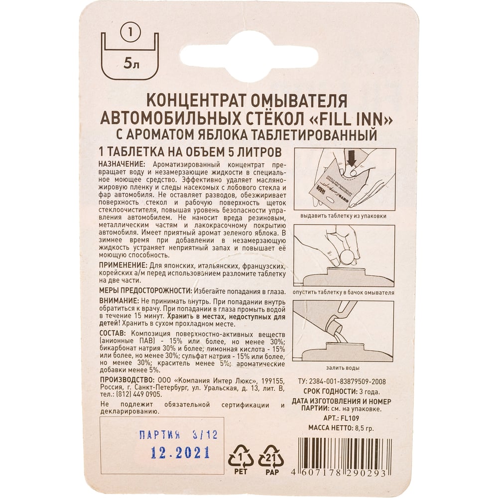 Ароматизированный концентрат стеклоомывателя в таблетке (яблоко; 1 шт.) FILL INN FL109