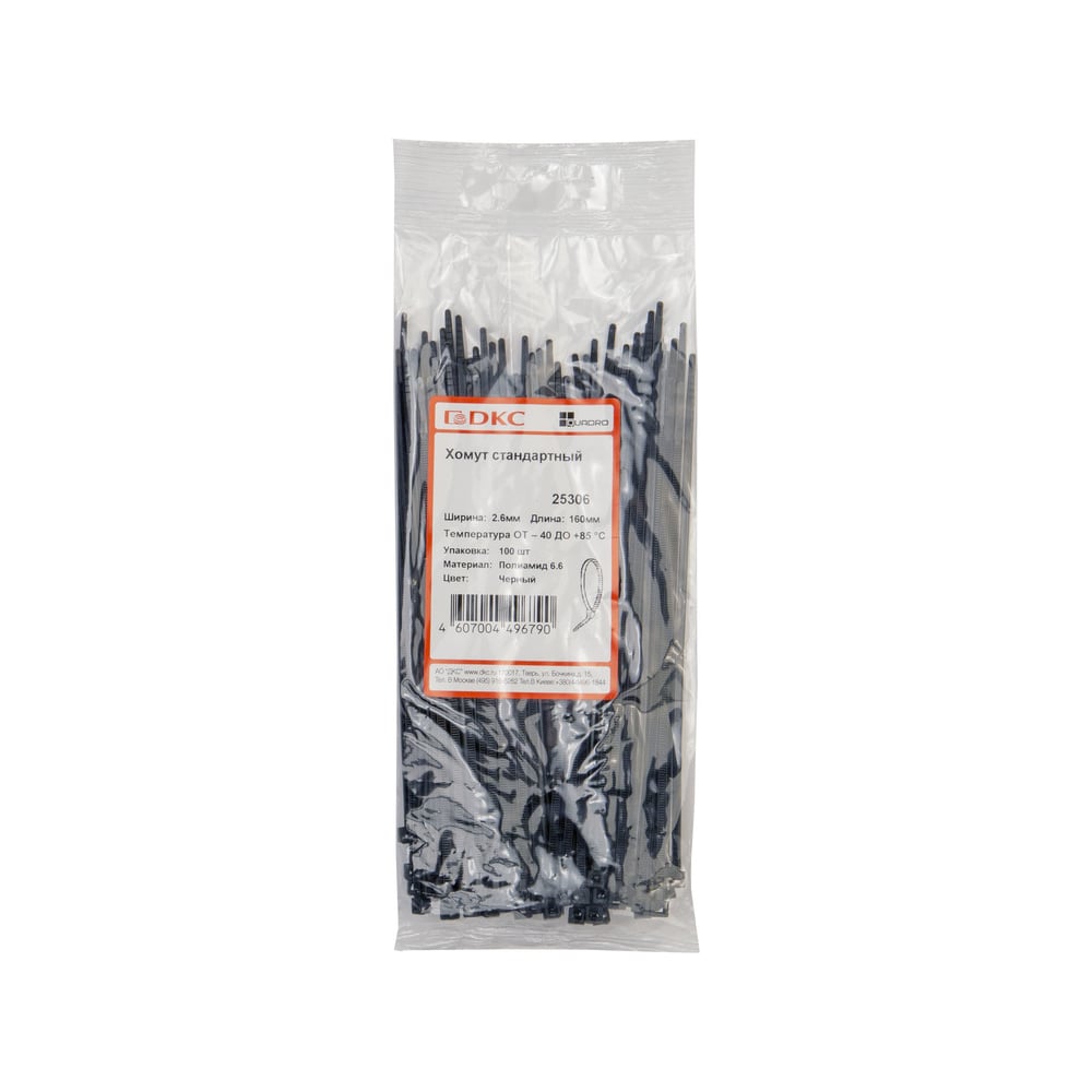 Нейлоновый хомут DKC 2.5х160 черный 100шт 25306SR