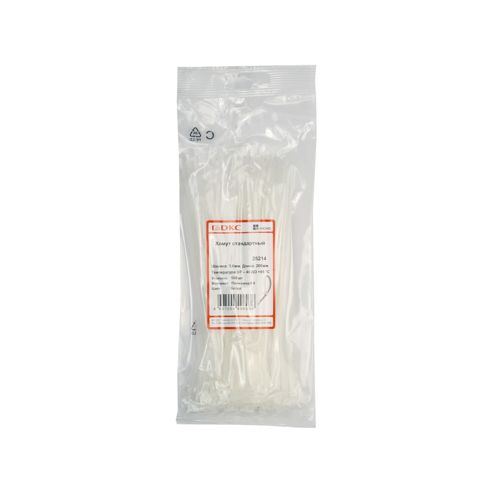 Нейлоновый хомут DKC 3.6х200 белый 100шт 25214SR