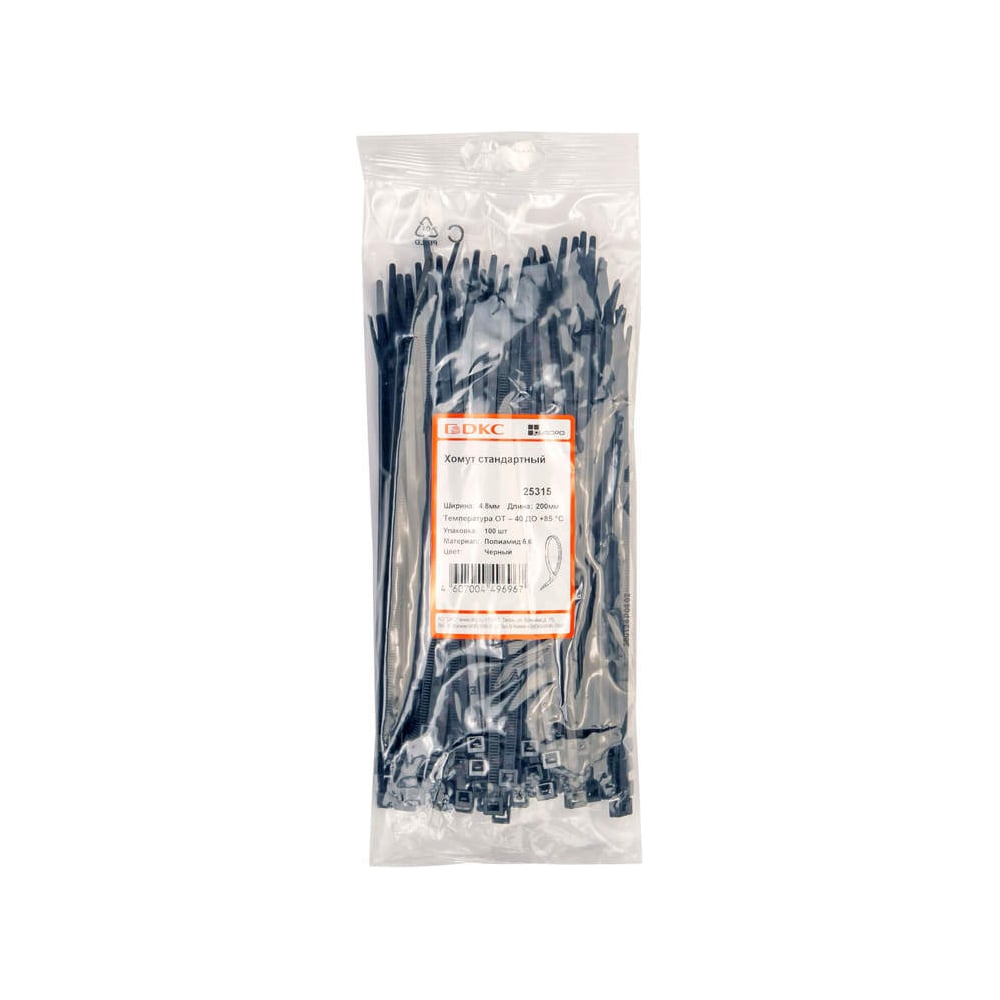Стандартный хомут DKC P6.6, 4.8х200, черный 100 штук 25315SR