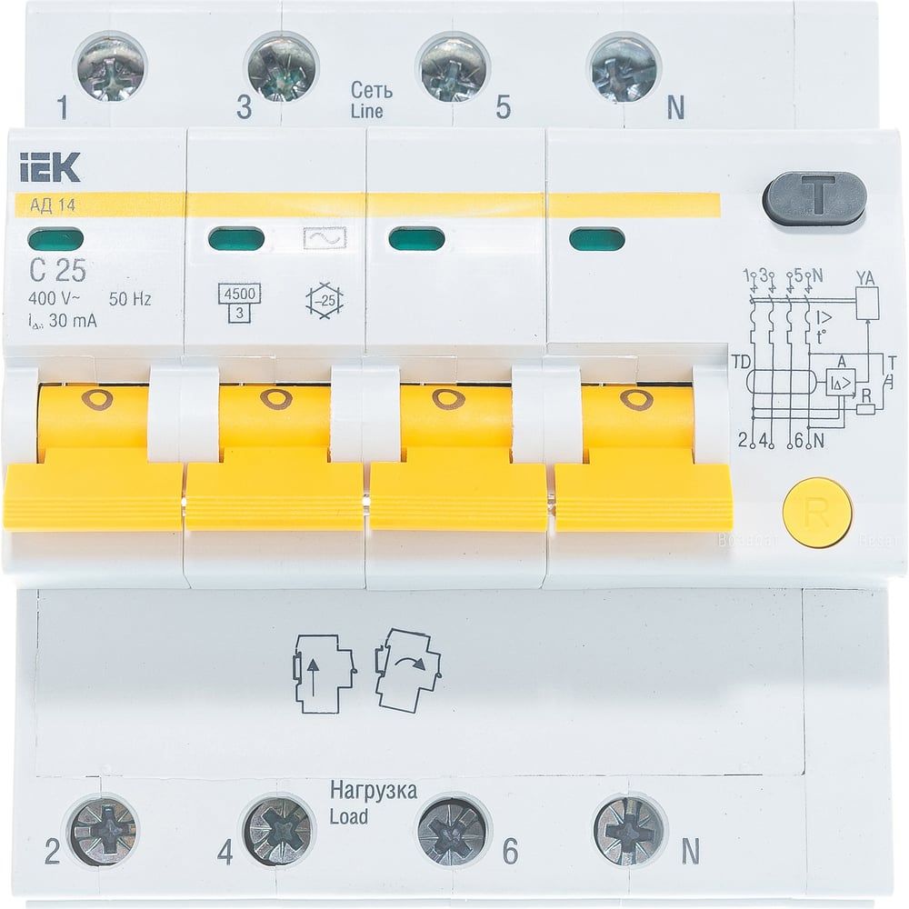 Дифференциальный автомат IEK АД-14 4п, 25А, C, 30мА MAD10-4-025-C-030