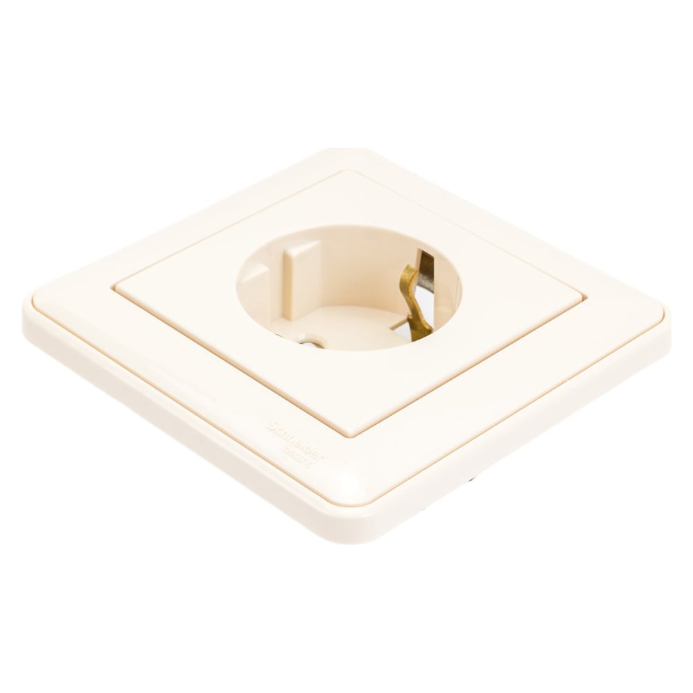 Розетка с заземлением Systeme Electric с защитными шторками и с рамкой, слоновая кость WESSEN 59 SchE RS16-152-28