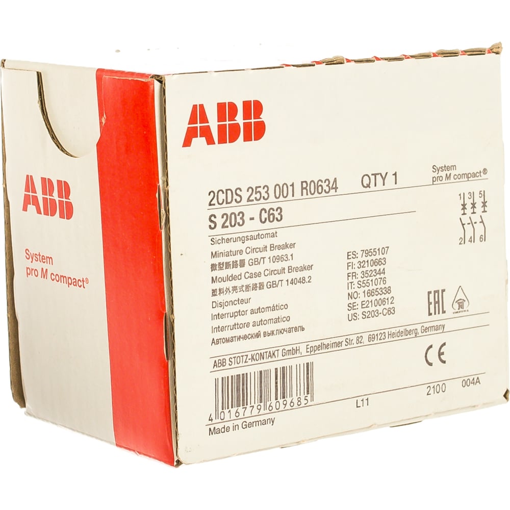 Автоматический модульный выключатель ABB 3п C S203 6кА 63А 2CDS253001R0634