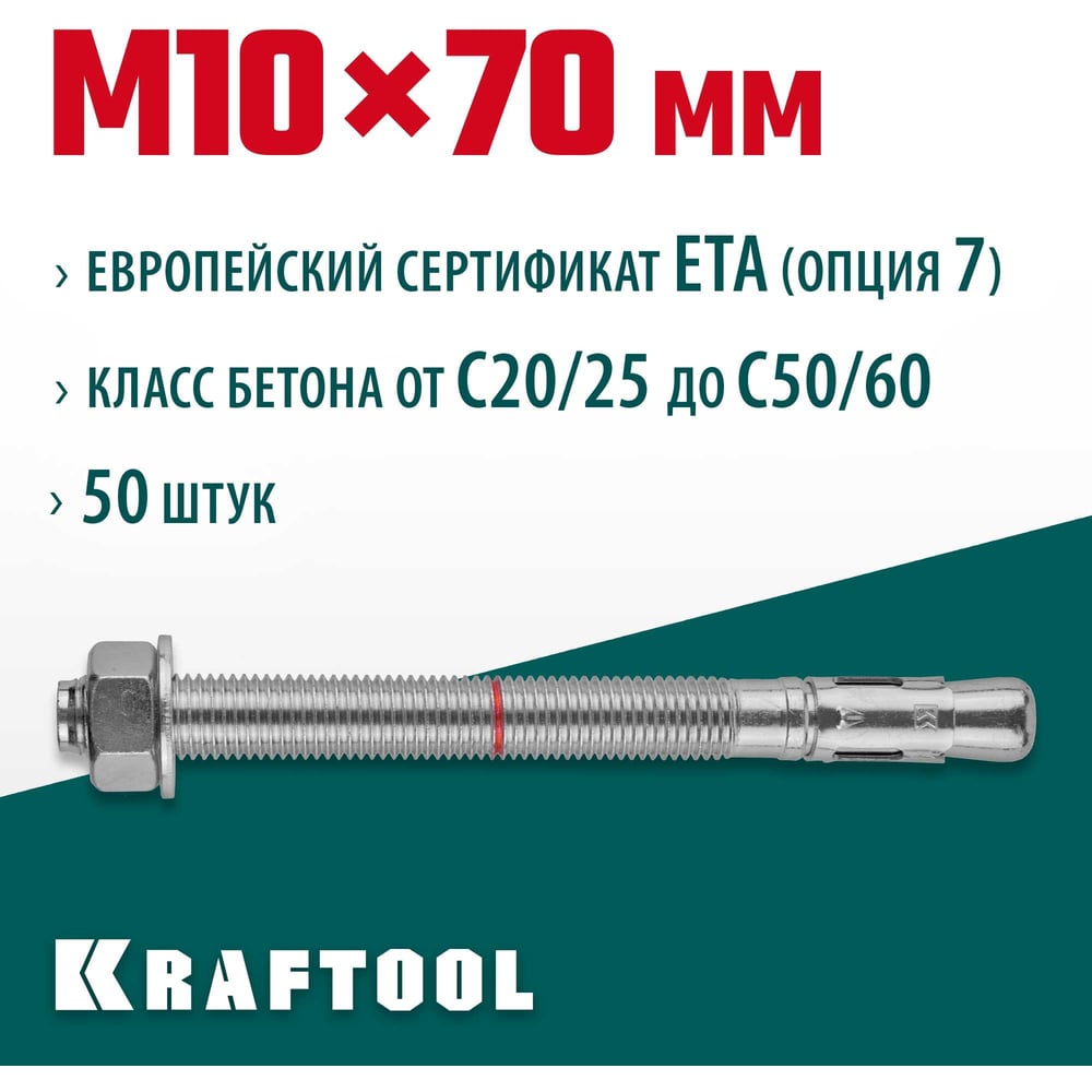 Клиновой анкер KRAFTOOL оцинкованный, М10x70, 50 шт. 302184-10-070