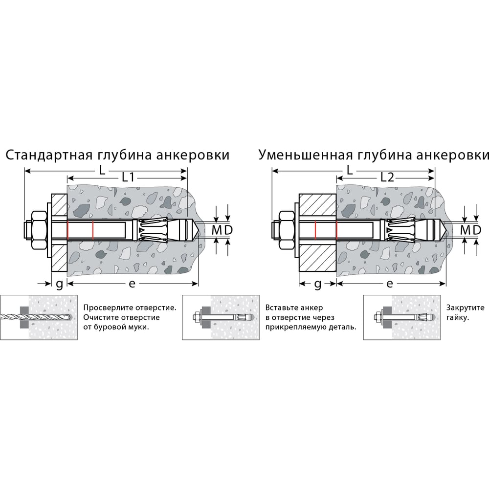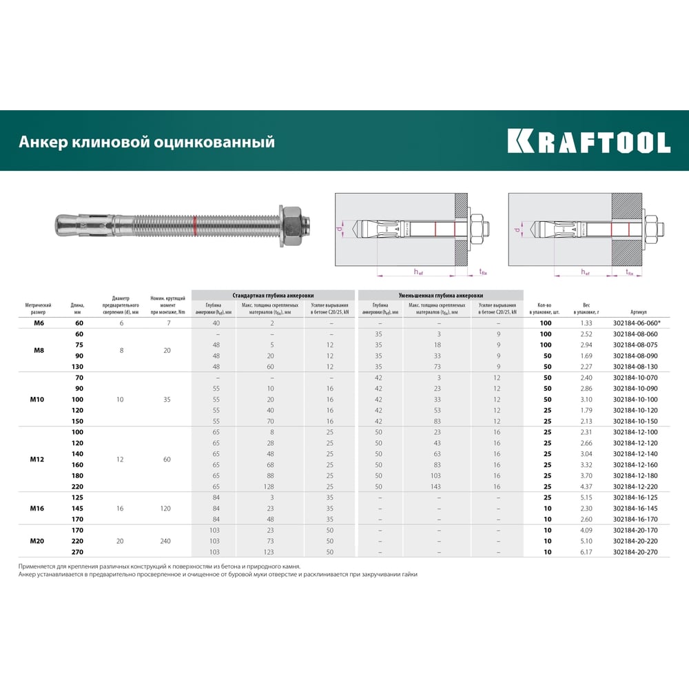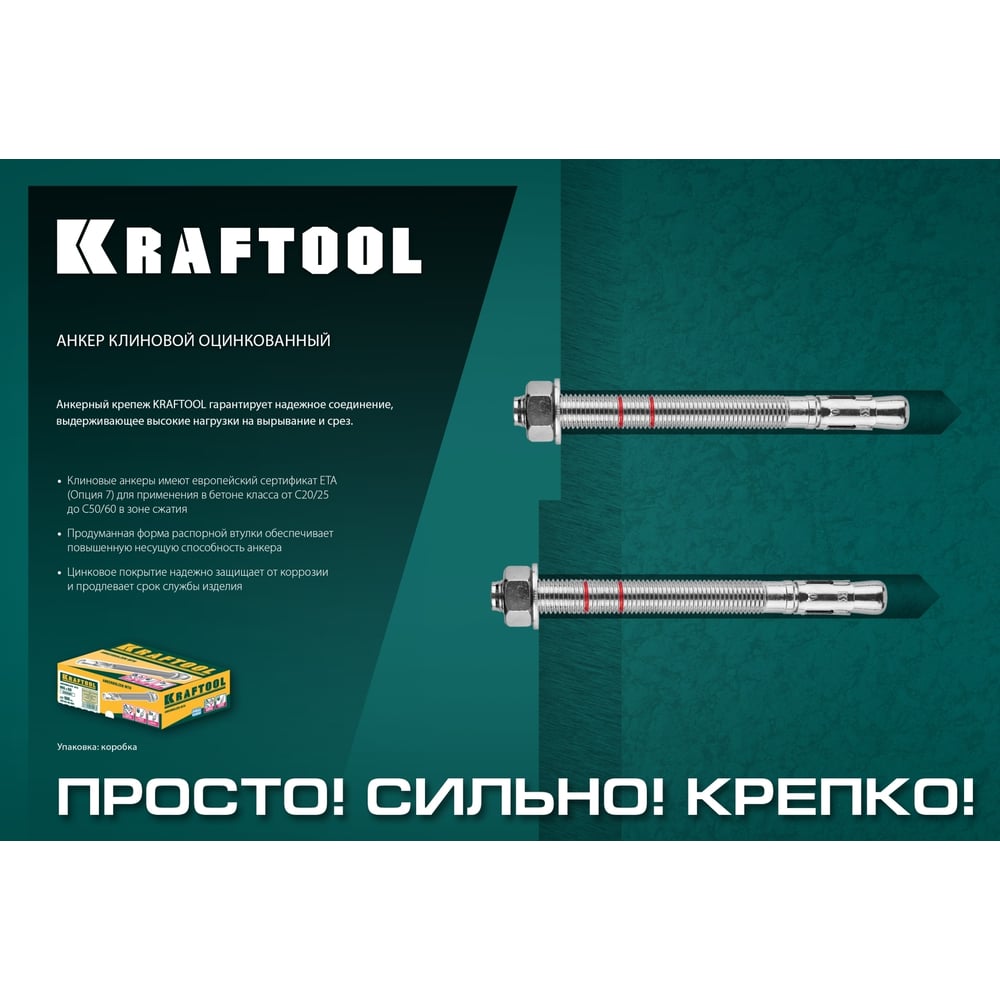 Клиновой анкер KRAFTOOL оцинкованный, М20x170, 10 шт. 302184-20-170