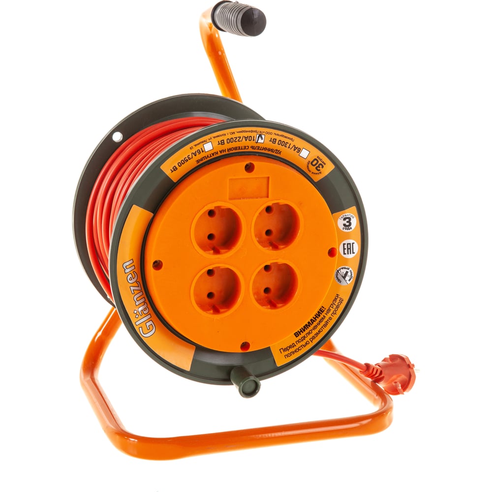 Силовой удлинитель на катушке GLANZEN EB-30-004 00012291