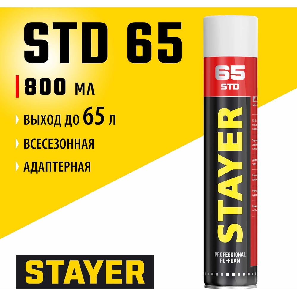 Адаптерная полиуретановая пена STAYER STD Professional всесезонная, выход до 65 л, 800 мл 41134