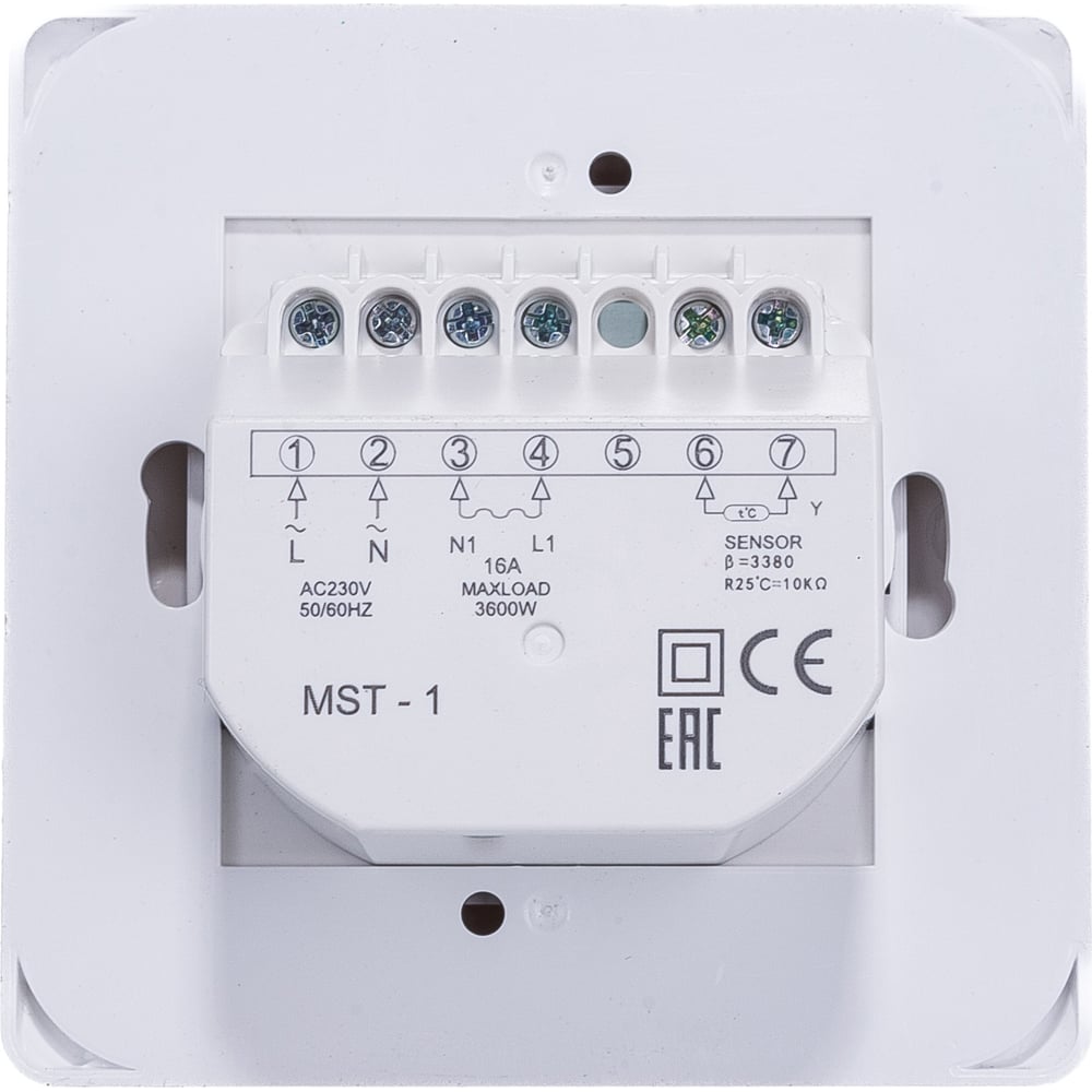 Габариты без упаковки 102х101х63 мм Цвет белый Тип механический Степень защиты 20 IP Способ монтажа встроенная установка Таймер нет Max ток 16 А Пульт ДУ нет Max нагрузка 3500 Вт Количество датчиков 1 шт Температурный диапазон для пола от +5 до +40 °С Программирование нет Управление по Wi-Fi нет
