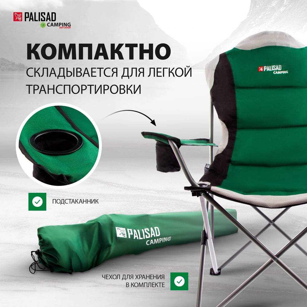 Складное кресло с подлокотниками и подстаканником PALISAD Camping 69592