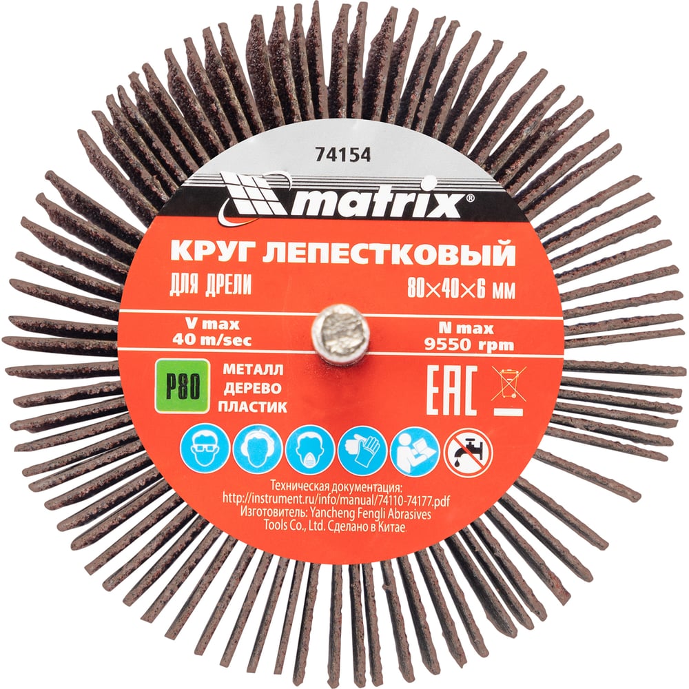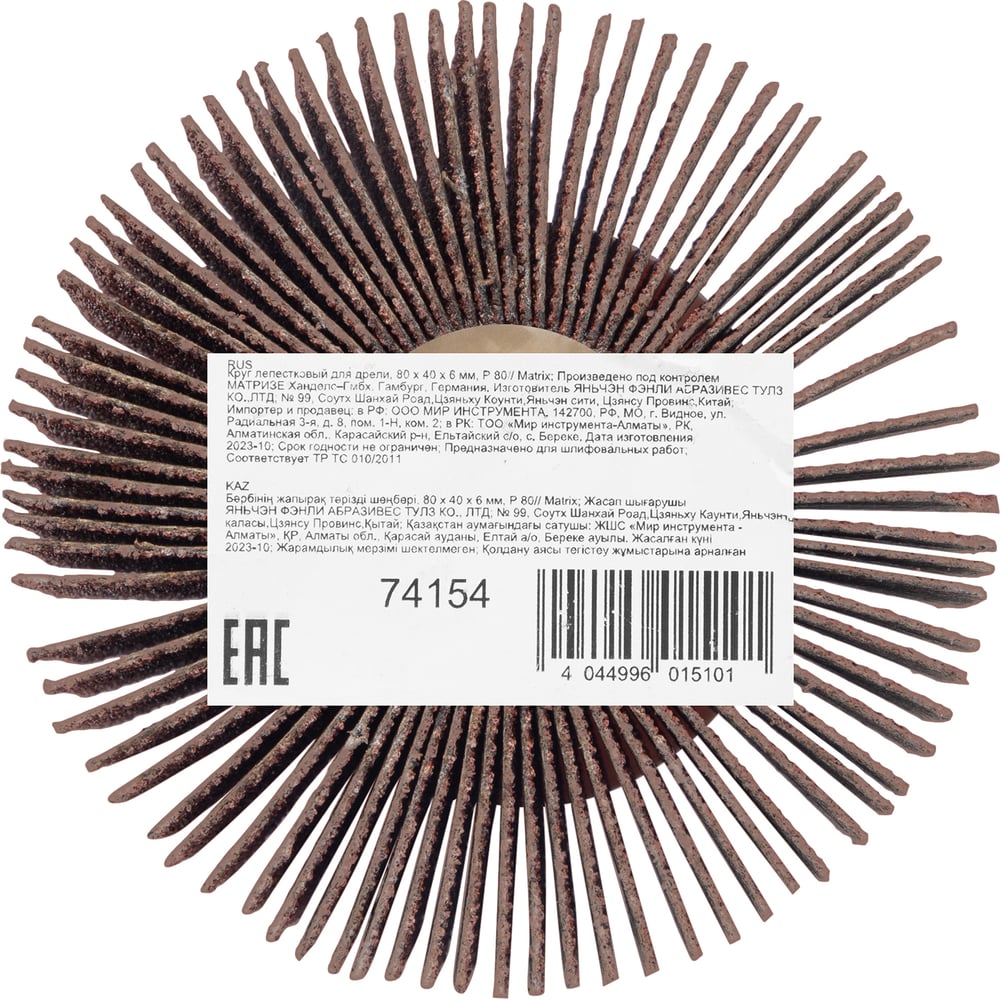 Круг лепестковый радиальный для дрели (P 80; 80х40х6 мм) MATRIX 74154