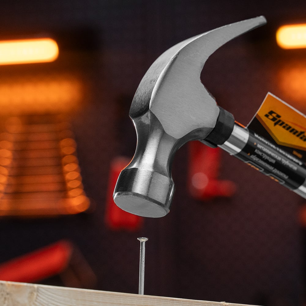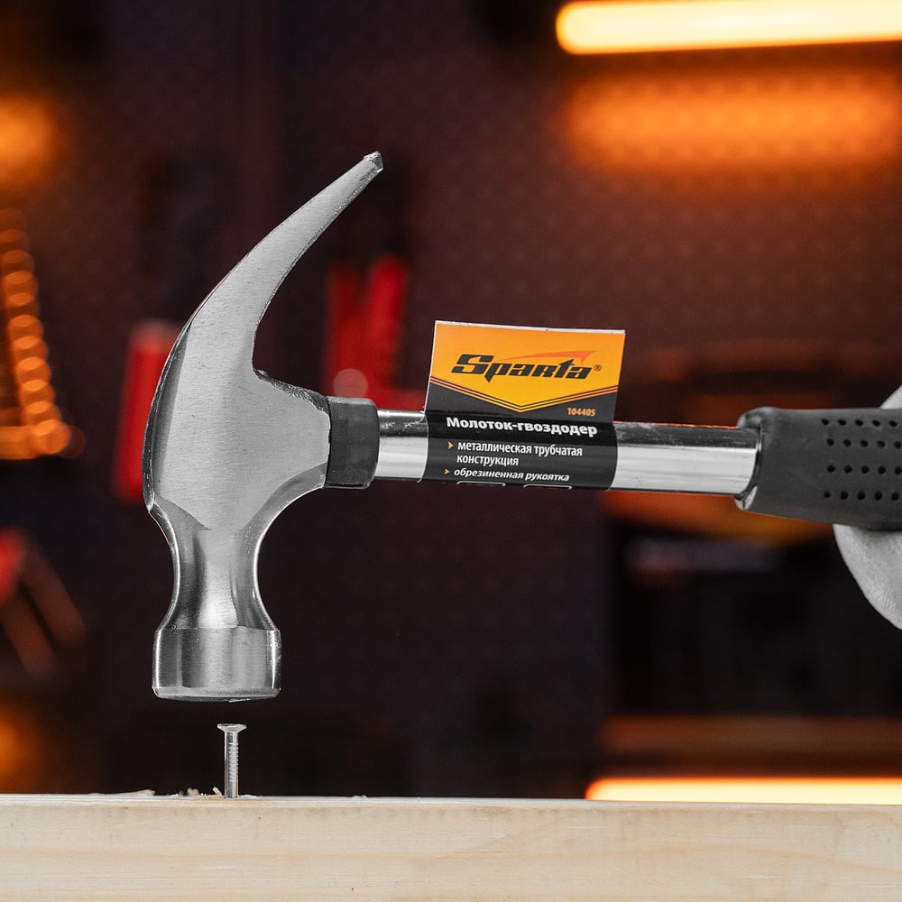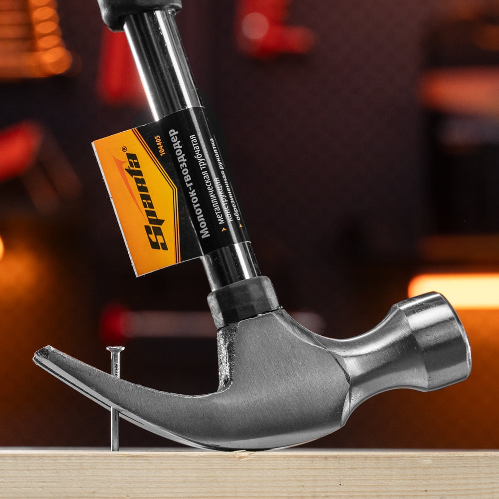 Молоток-гвоздодер SPARTA 450 г, боек 27 мм, металлическая трубчатая обрезиненная рукоятка 104405