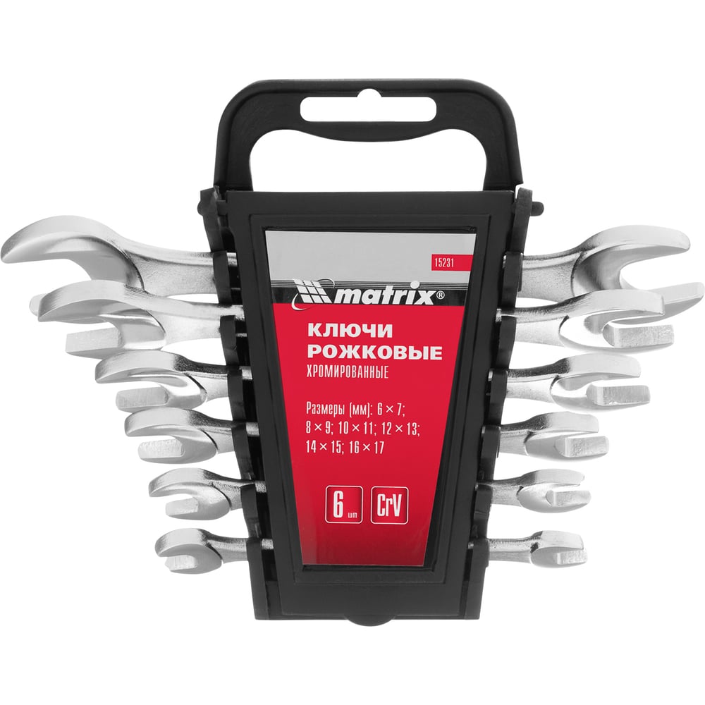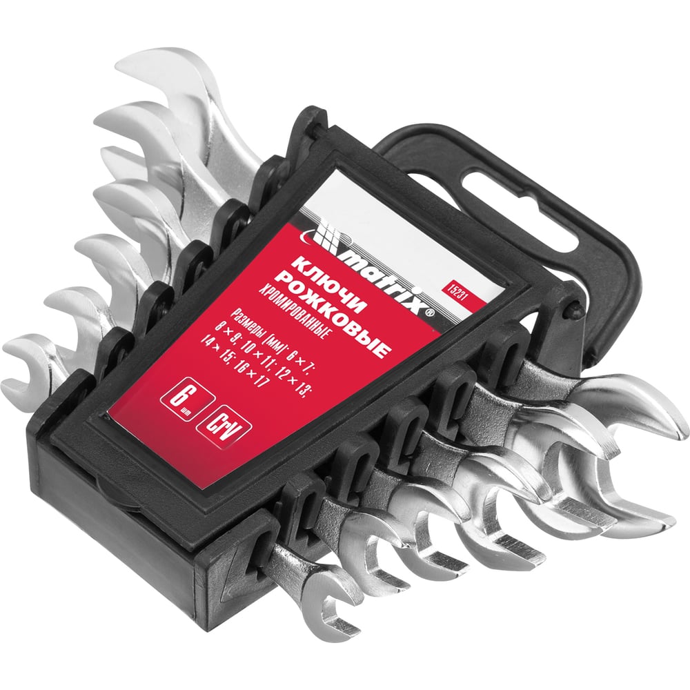 Набор рожковых ключей 6х17 мм, 6 шт., CrV, хромированные MATRIX 15231