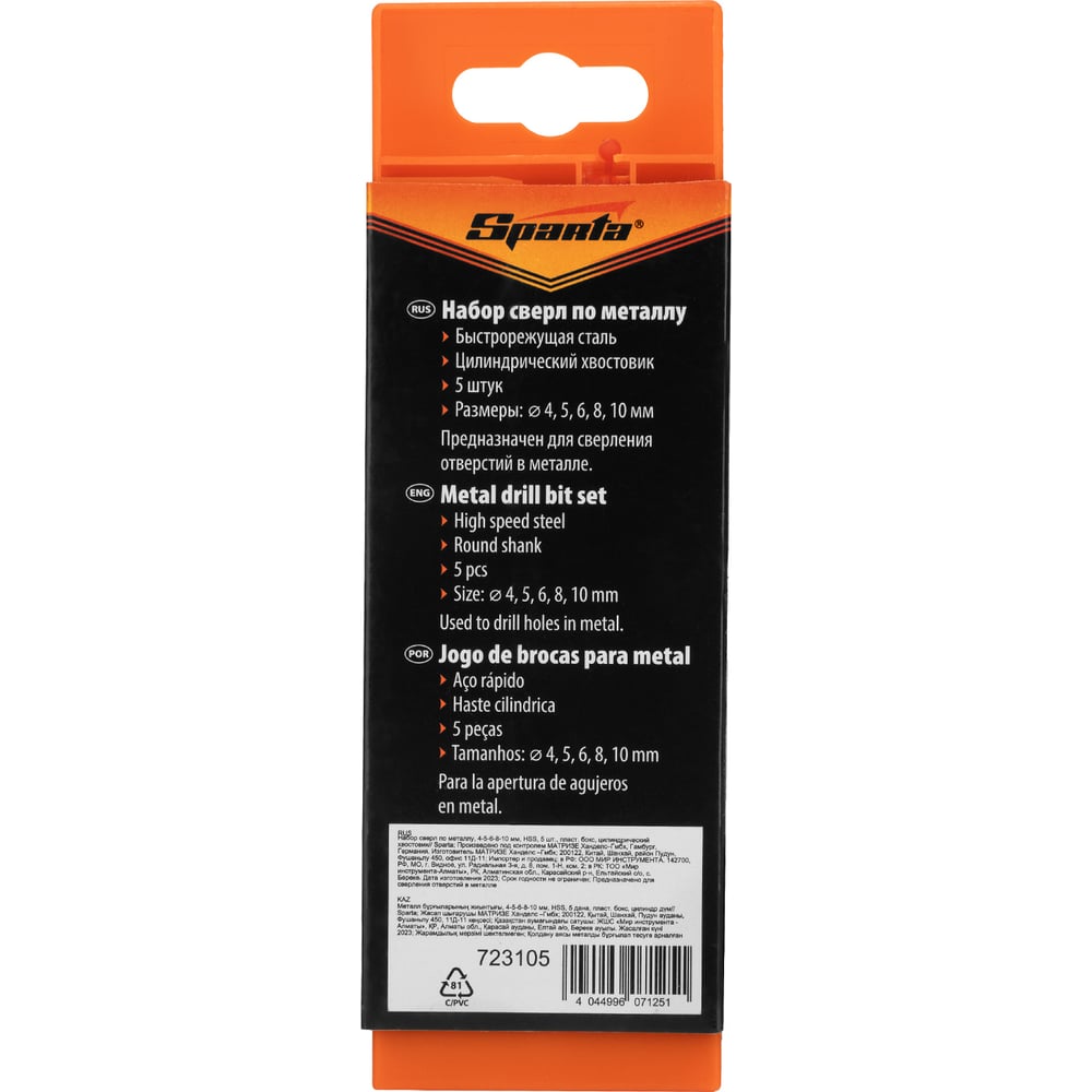 Набор сверл по металлу SPARTA 723105
