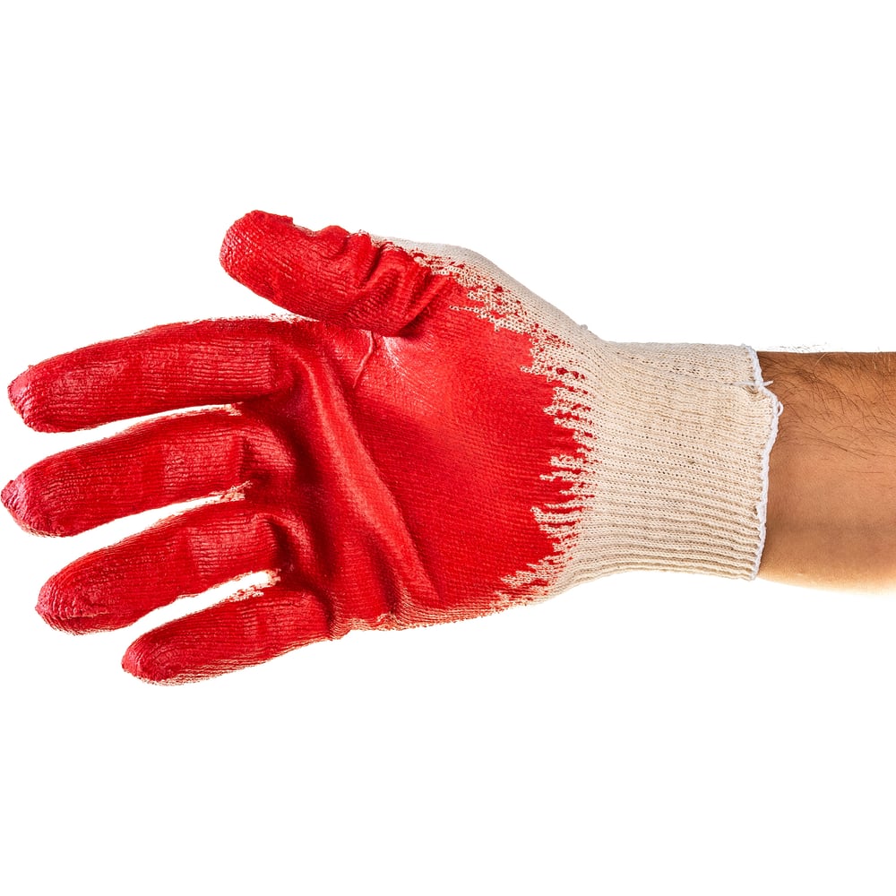 Материал хлопок, латекс Цвет белый/красный Вес нетто 0.036 кг Назначение садово-строительные Количество пар в упаковке 1 Сезонность весна/осень/лето Класс вязки 10 Способ фиксации манжета на резинке