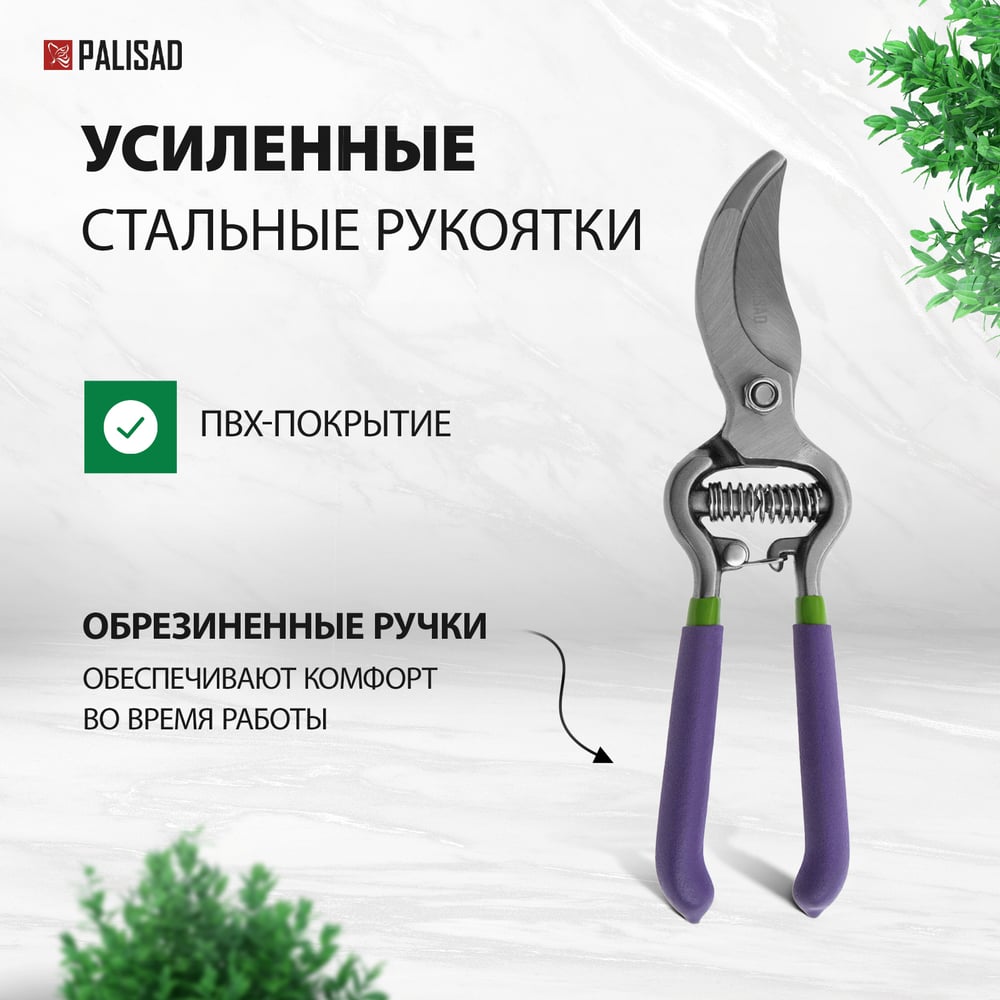 Секатор 200 мм, пружина возвратная спирал.типа, легированная сталь, обрезинен.ручки PALISAD 60561
