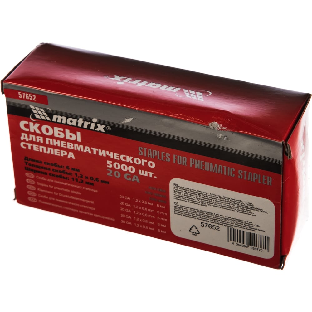 Скоба (5000 шт; 11.2х6 мм; 1.2х0.6 мм) для пневматического степлера MATRIX 57652