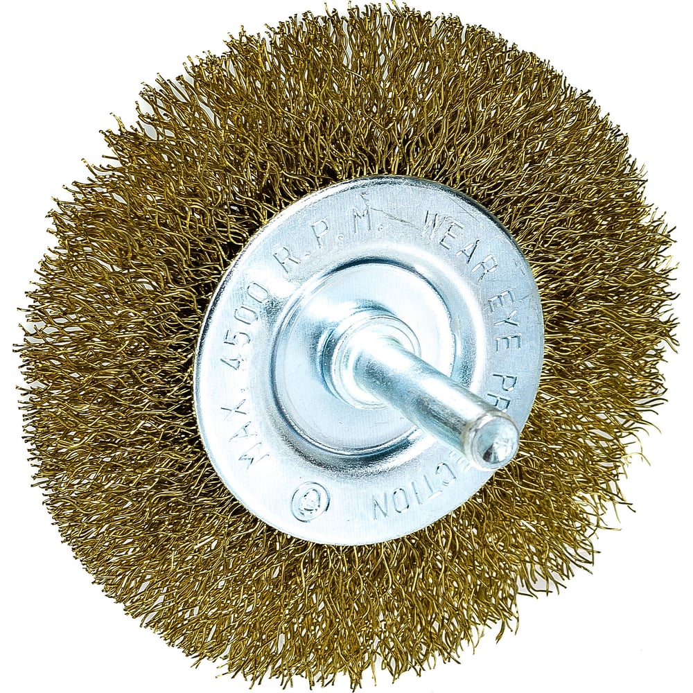 Щетка для дрели, 75 мм, плоская со шпилькой, латунированная витая проволока MATRIX 74448