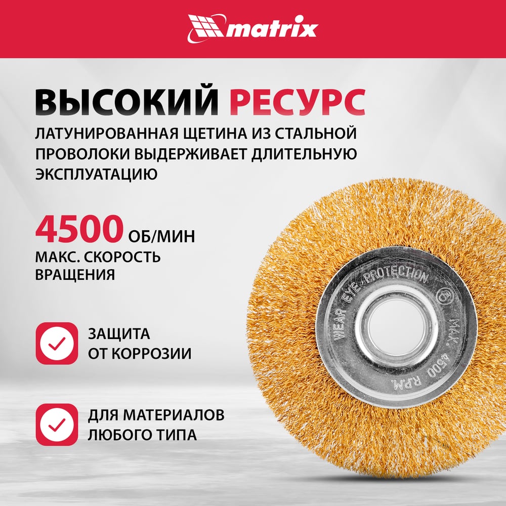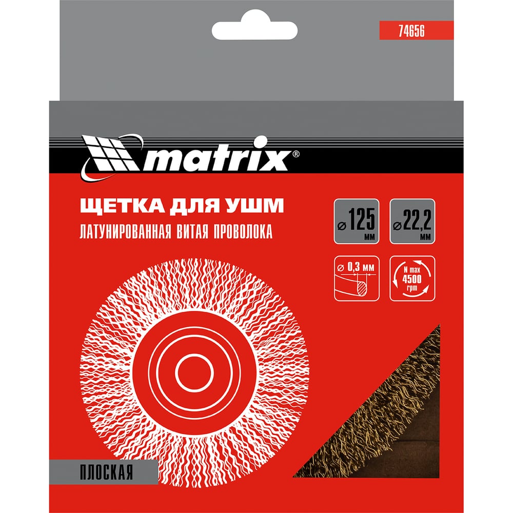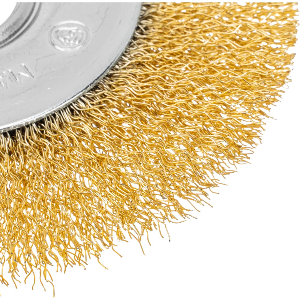 Щетка для УШМ, 125 мм, посадка 22.2 мм, плоская, латунированная витая проволока MATRIX 74656
