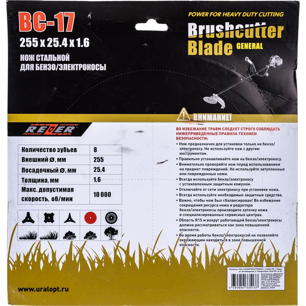 Нож для бензокосы Rezer ВС-17