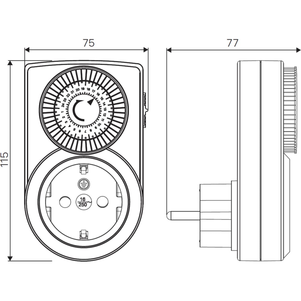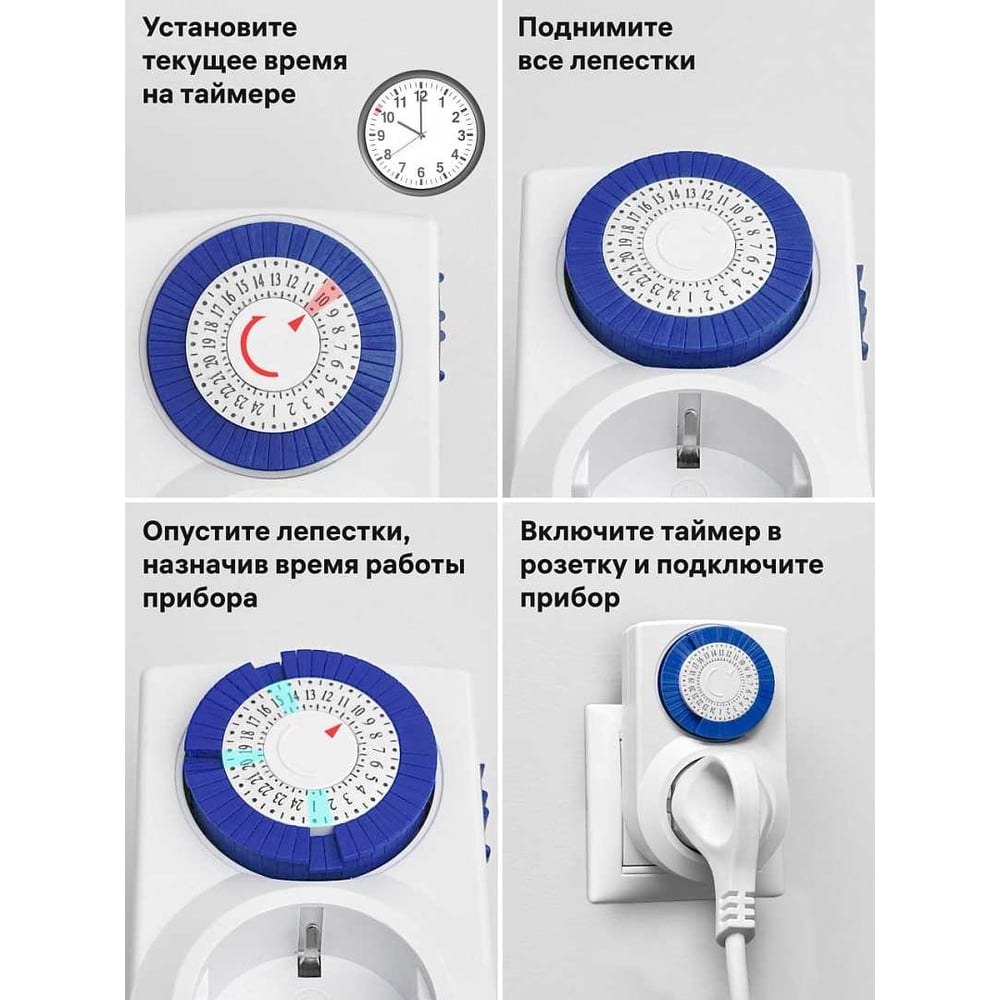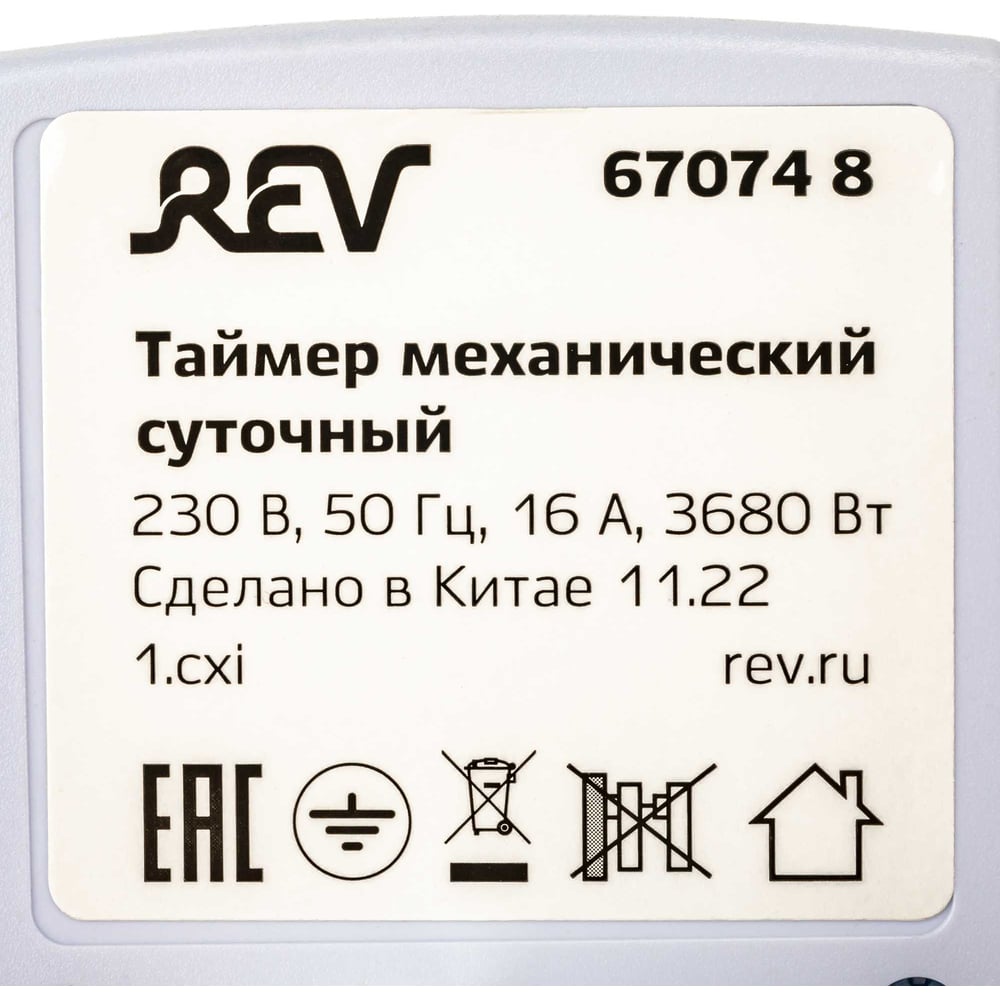 Механический суточный таймер duwi REV "Промо", до 3680Вт, 48 включений в сутки, белый, 67074 8