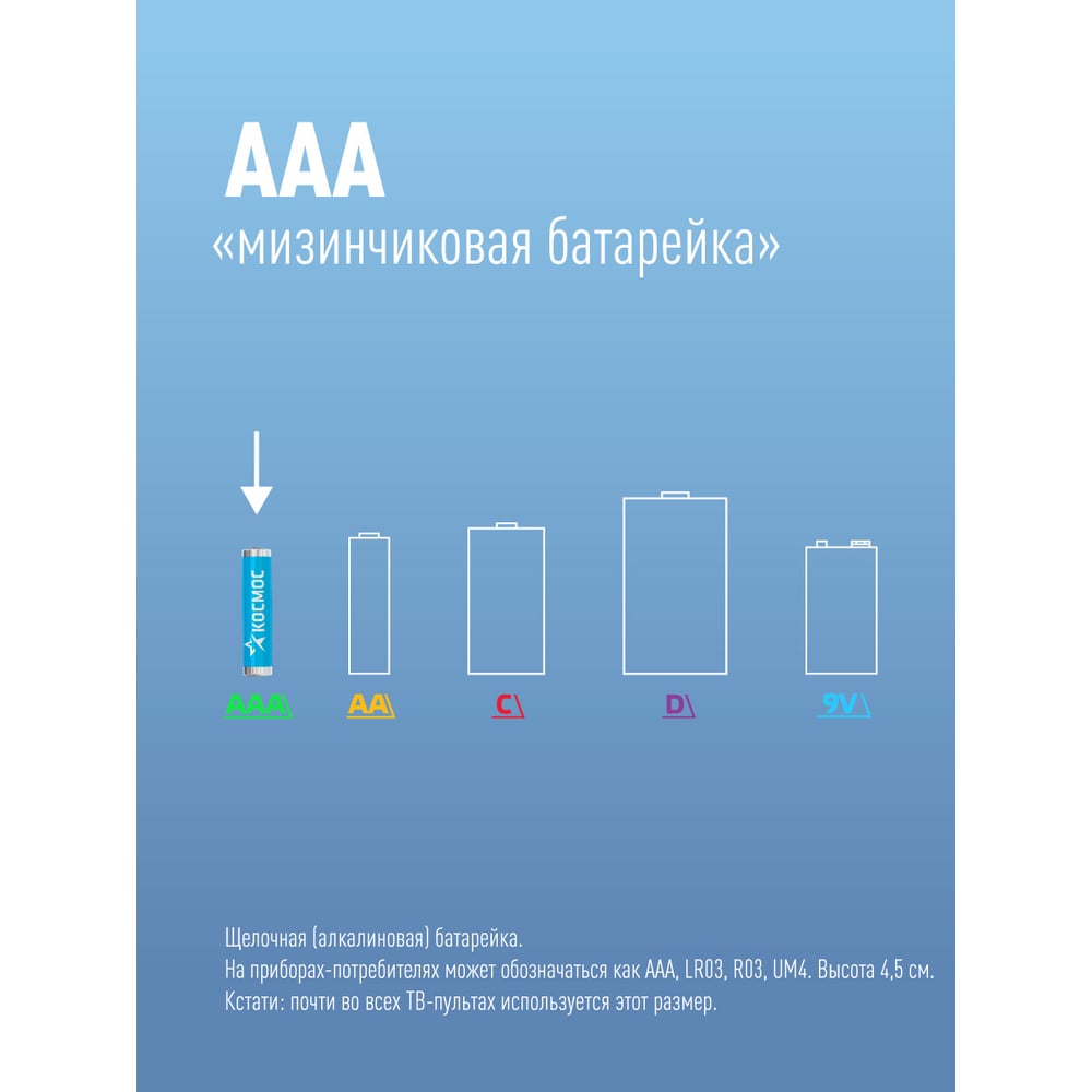 Элемент питания LR LR03 (20 шт) КОСМОС KOCLR0320BOX