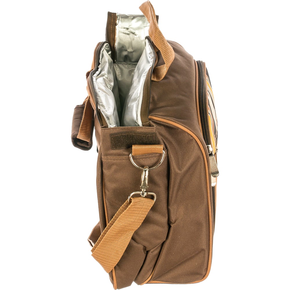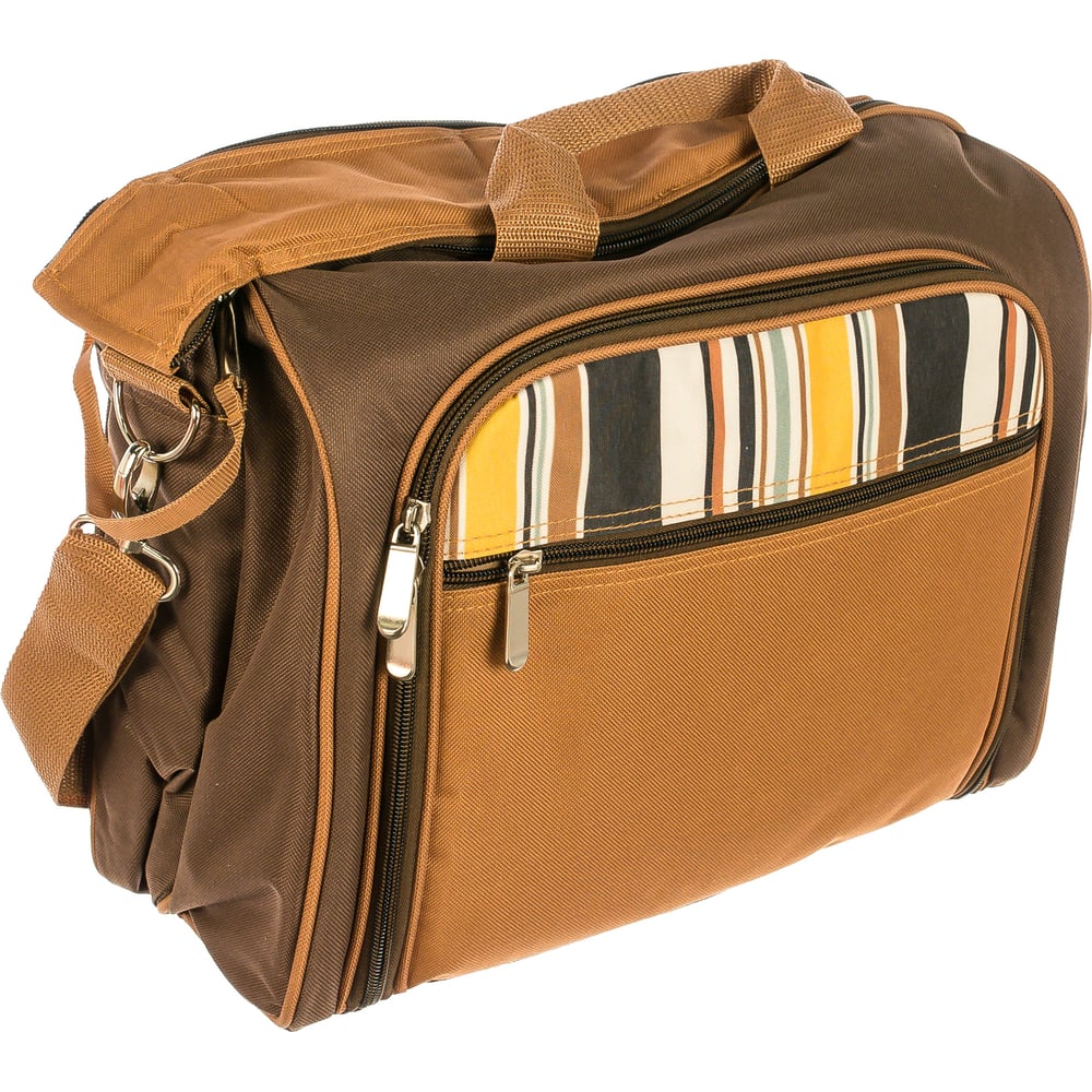 Габариты без упаковки 390х215х300 мм Высота 390 мм Объем 15 л Ширина 300 мм Вес нетто 2.1 кг Количество предметов в наборе 33 шт Глубина 215 мм Штопор 1 Нож 6 Вилка 4 Тарелка 4 Ложка 4 Стакан 4 Разделочная доска 1 Количество персон 4 шт Солонка 1 Термоизоляция да Перечница 1 Цвет сумки коричневый Материал посуды полистирол Материал приборов нержавеющая сталь/пластмасса Материал сумки полиэстер Чашка 4