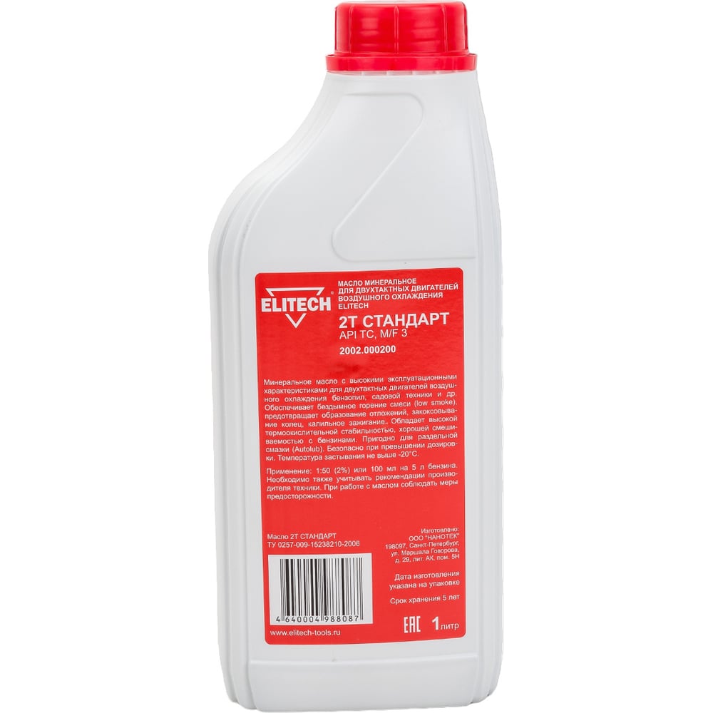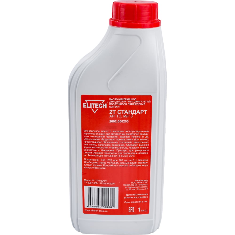 Масло минеральное (1 л) для 2-х тактных двигателей воздушного охлаждения Elitech 2002.000200