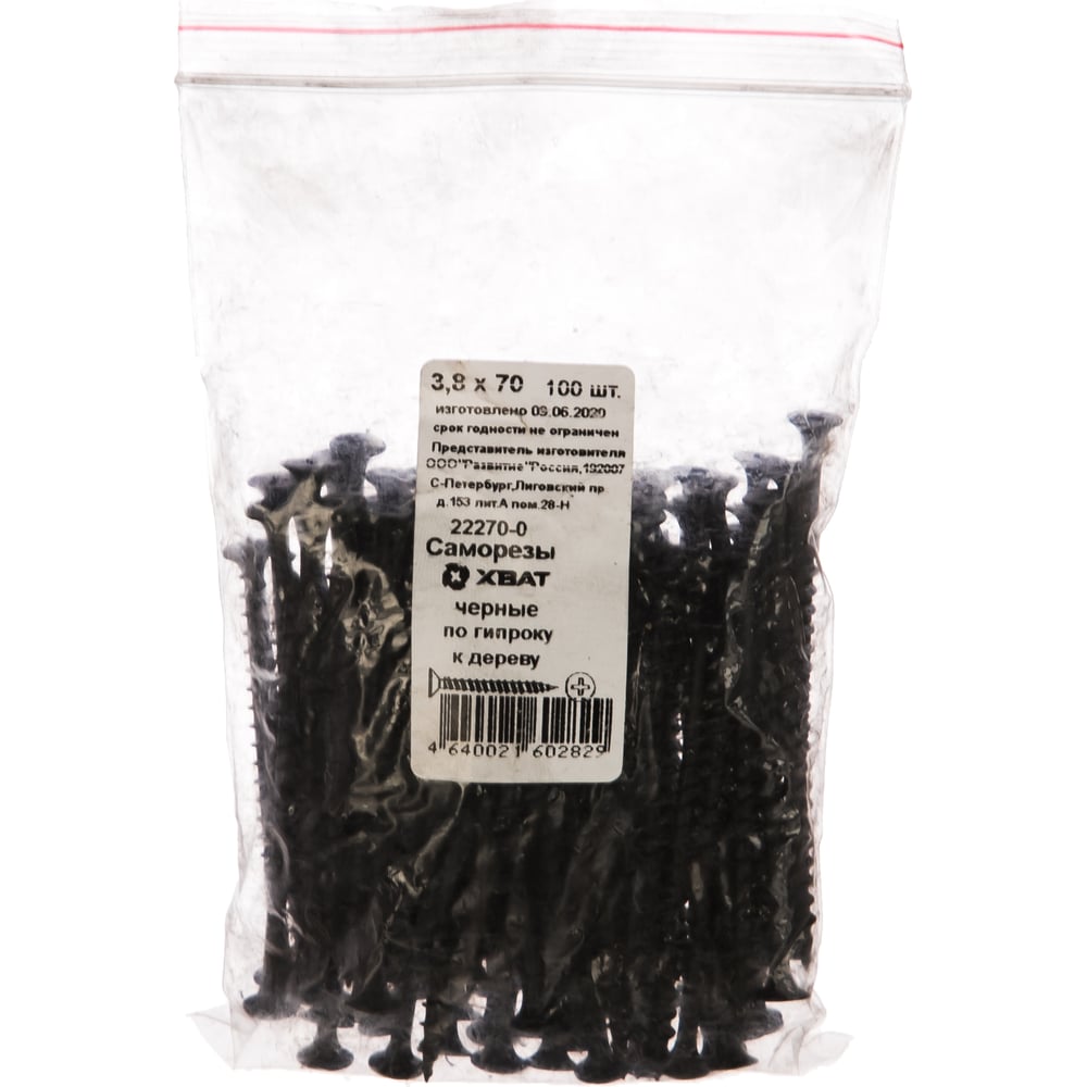 Саморезы черные по гипроку к дереву (100 штук, 3.8 х 70, 4.2 х 70) ХВАТ 22270-0