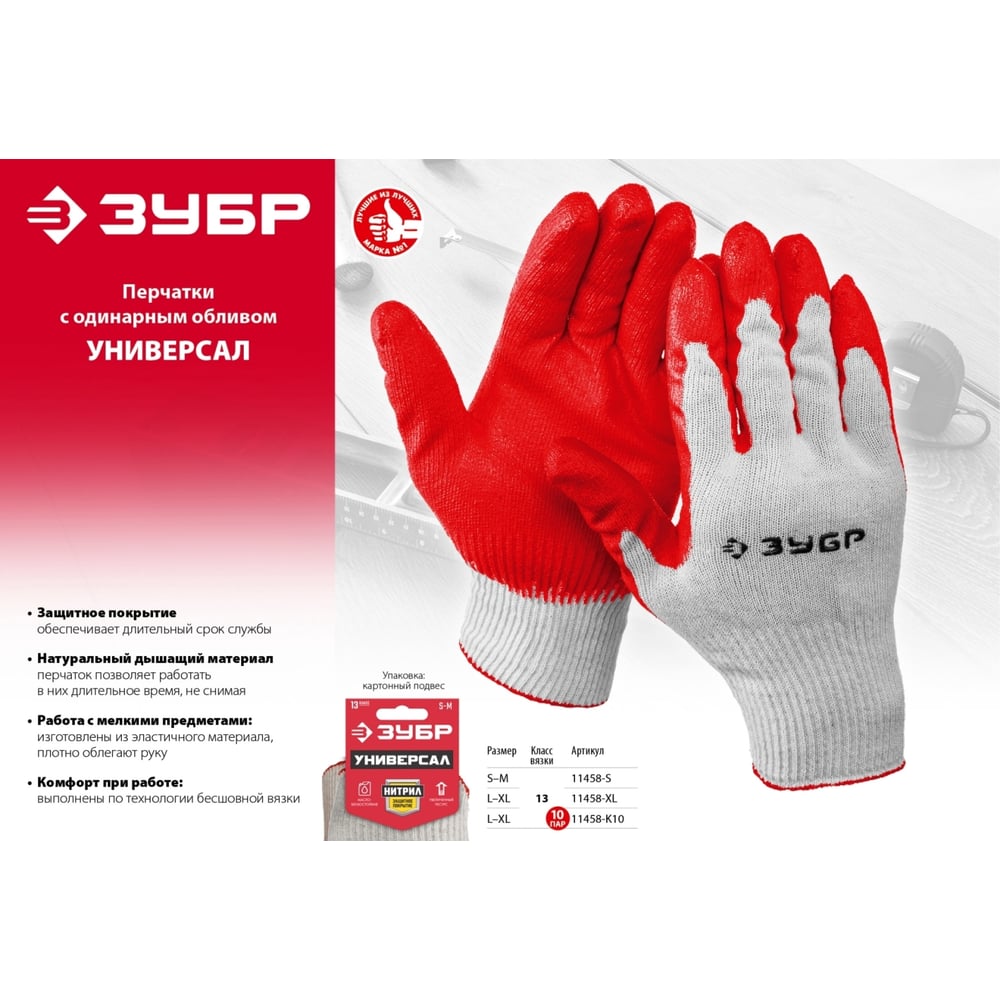Трикотажные перчатки Зубр МAСTEP 13 класс, х/б, обливная ладонь из латекса, L-XL, 10 пар 11458-K10