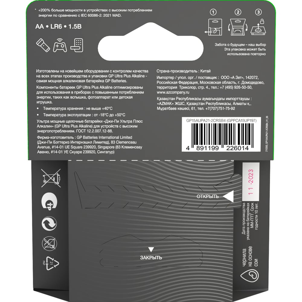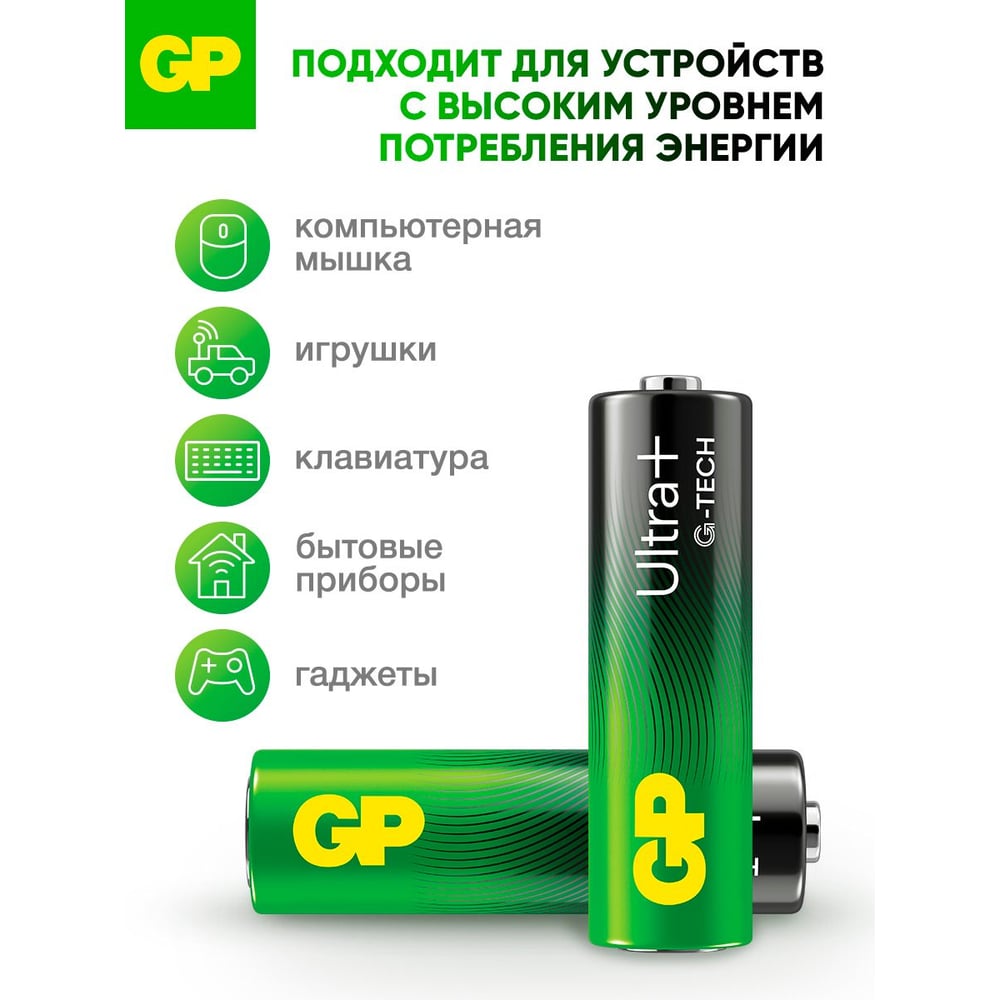 Батарейки GP АА пальчиковые алкалиновые Ultra Plus Alkaline, набор 4 шт (15AUPA21-BC4) 15497446