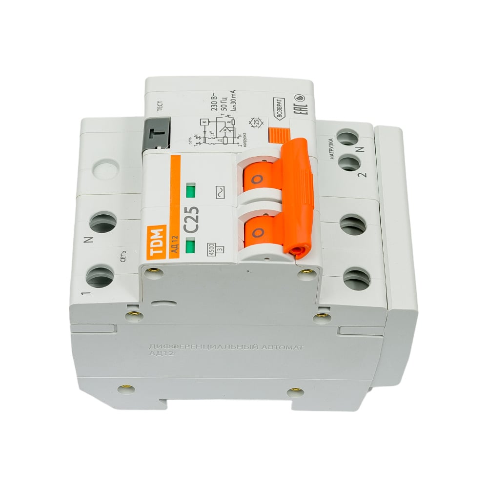 Дифференциальный автомат TDM ELECTRIC АД12 2Р 25А 30мА SQ0204-0011