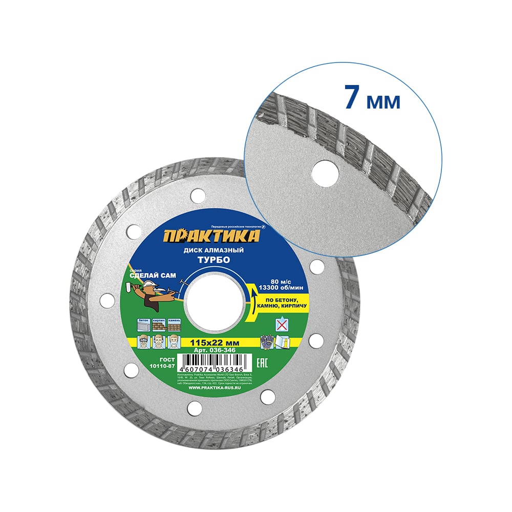 Диск алмазный турбо (115х22.2 мм) ПРАКТИКА 036-346