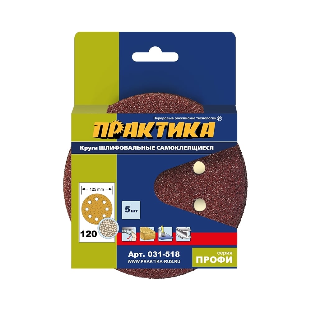 Круг шлифовальный на липкой основе (5 шт; 125 мм; Р120) ПРАКТИКА 031-518