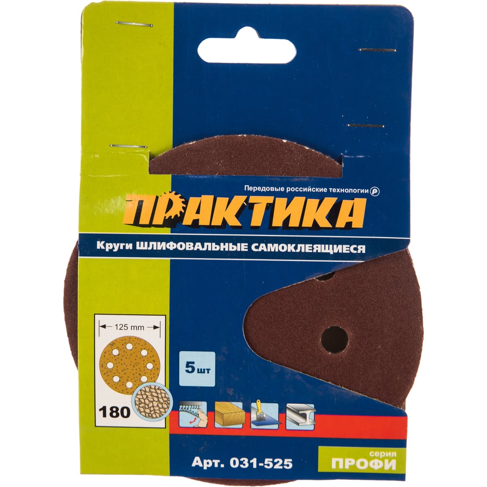 Круг шлифовальный на липкой основе (5 шт; 125 мм; Р180) ПРАКТИКА 031-525