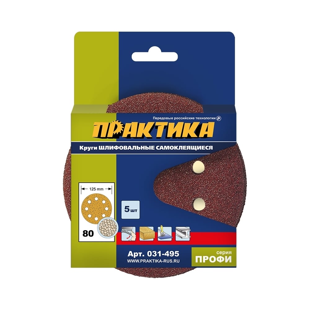 Круг шлифовальный на липкой основе (5 шт; 125 мм; Р80) ПРАКТИКА 031-495